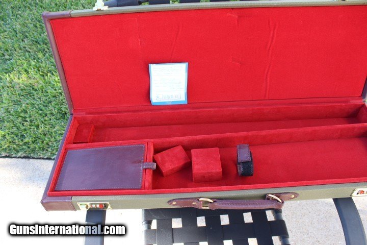 Description: Here is a a case that is patterened after the Winchestered Styled Gun Case 101/23 caseThe case has a plush red velour padded interior. Has a handy accessory compartment that is covered. This was will fit an o/u or sbs with bbls to 28" The case is appears to new. It does has some rippling of the fabric and a couple of small indents to the brown trim as it has been sitting on a shelve. The case has a green canvas exterior with brown trim. Has 3 combination locks that have never been set. Their is a good chance this case was made in Italy as I imported cases from both Italian companies that made cases for Winchester. It may have has a gun in it just to check the length. You know I have nice stuff. Only $175.00. Plus shipping. Paypay and personal checks are welcome. Thanks for looking. John Boyd. Houston, Quality Arms, Houston TX 713-818-2971 SOLD |