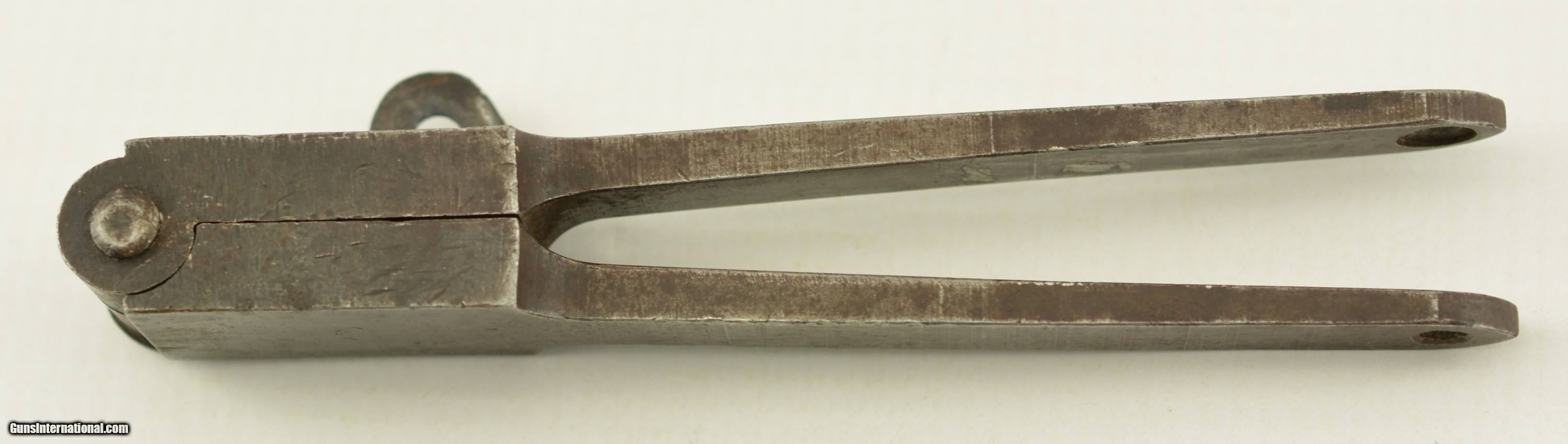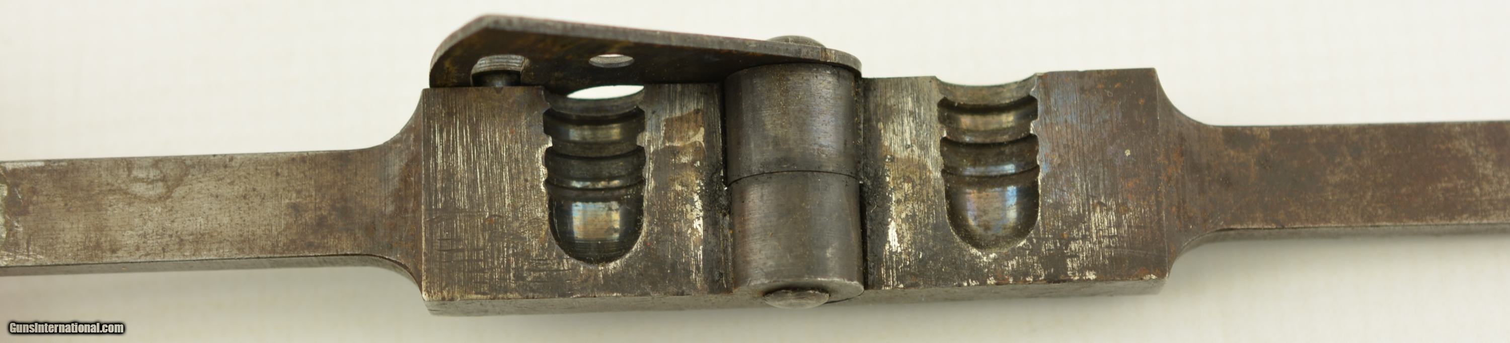 Description: This is a .36 Caliber bullet mold for the Savage and North Figure 8 revolver and the Savage Navy revolver. These molds were not marked and have straight legs. There is an excellent photograph of on in the Rowe and Curtis book “Reloading Tools of the Black Powder Era" on p233. Ken Thomsen in his article “History the Savage Revolving Firearms Company" noted that one bullet mold was shipped with every two Navy pistols. It is in good to very good condition with the metal surface turned to a plum gray color with the numerous marks and dings from use. Holes were drilled into the bottom of each leg and do not appear to be front he original production. Please see the photographs for further information on condition. SOLD Manufacturer: Savage and North Model: Mold Caliber Info: .36 Cal Gauge Info: .36 Cal |