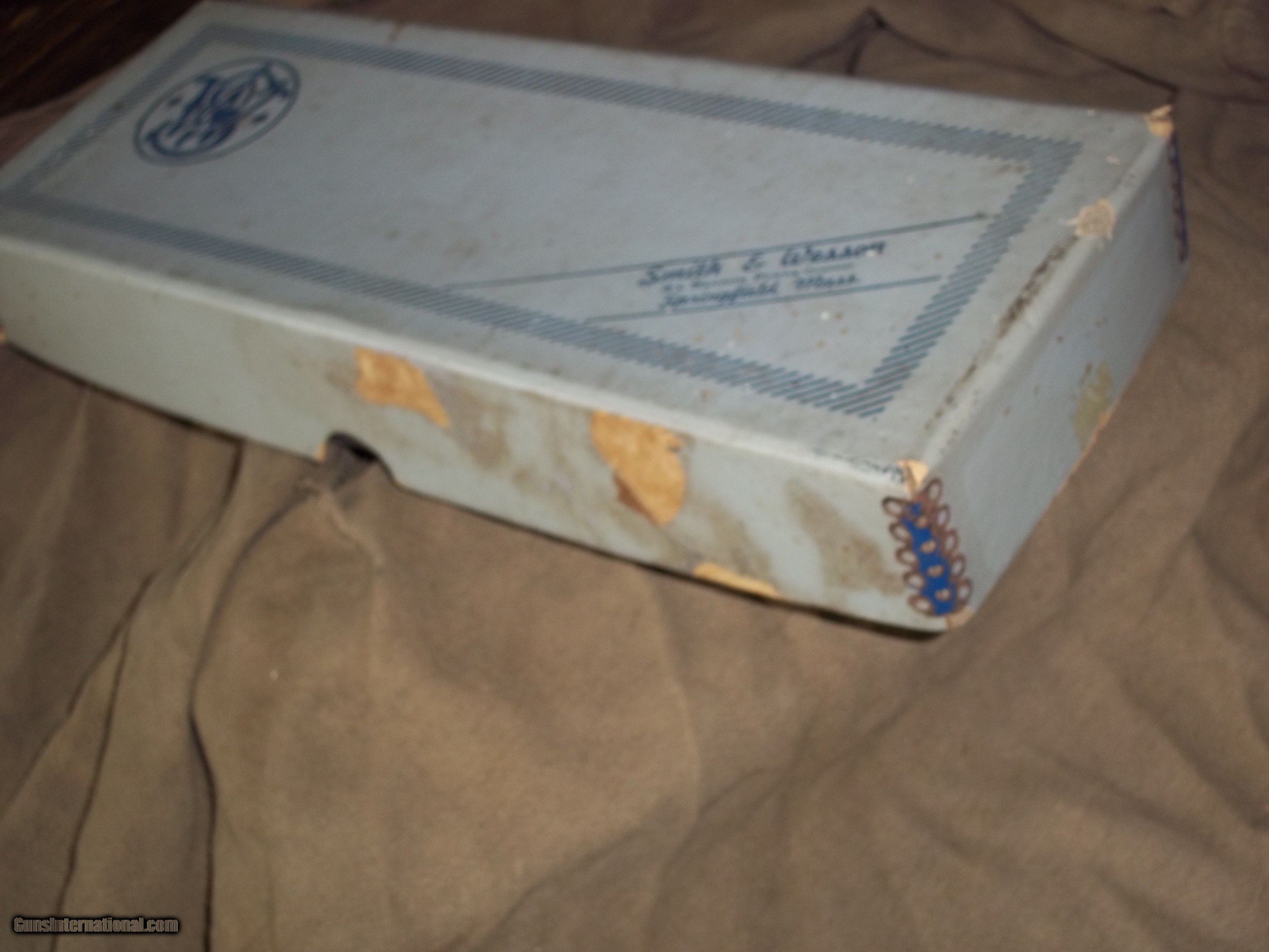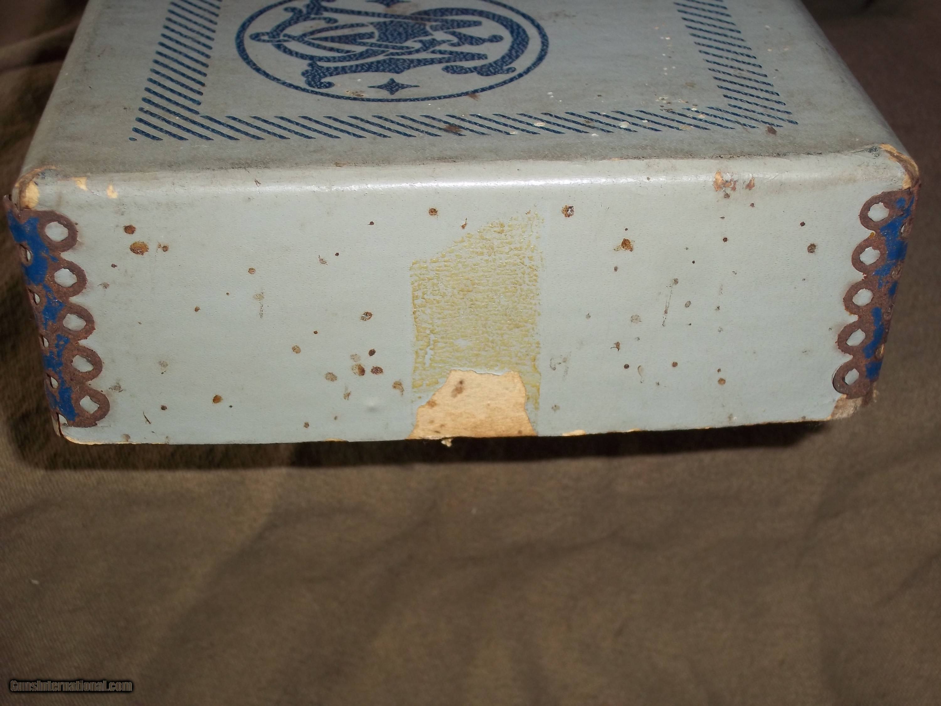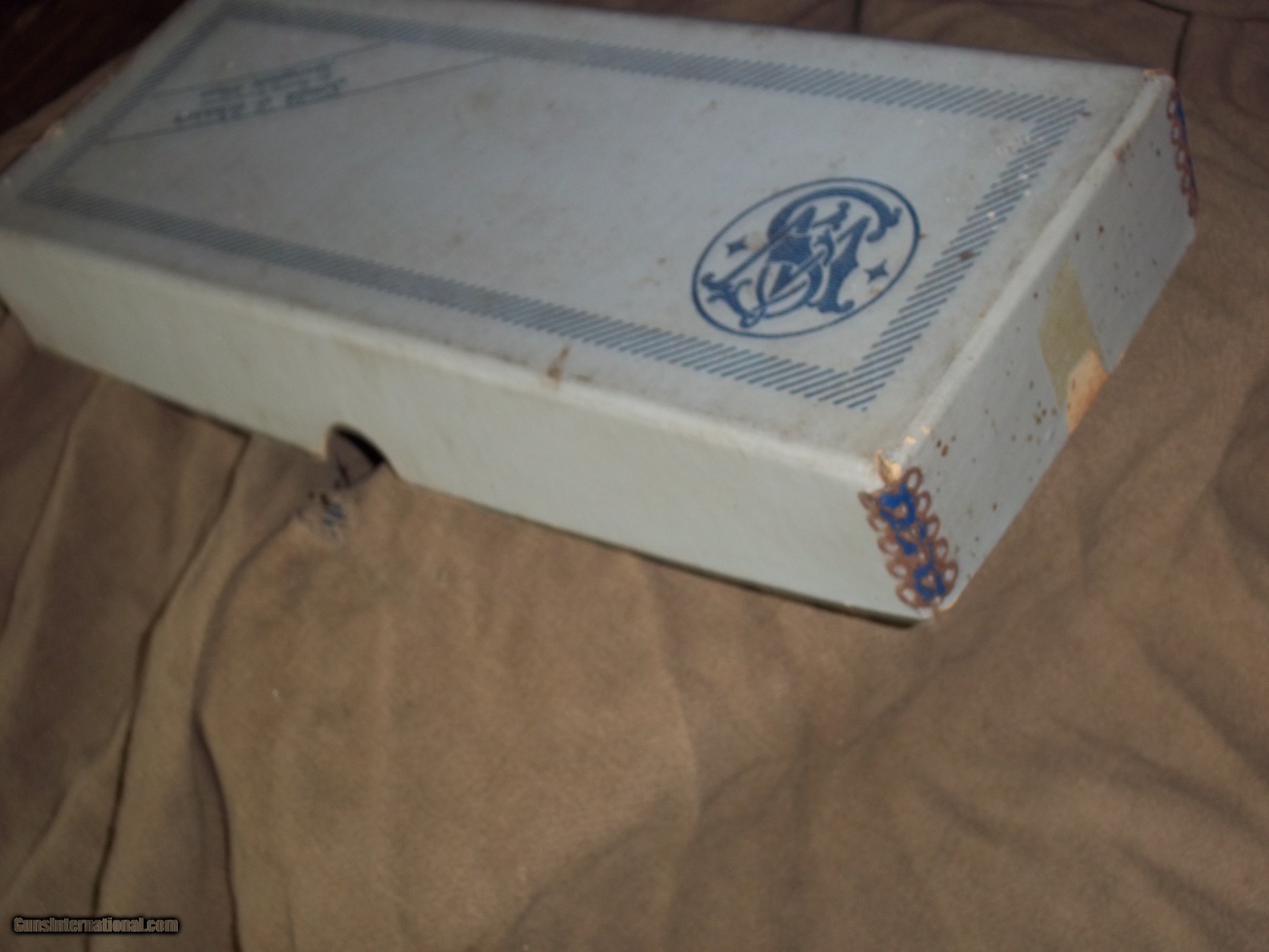 Description: VINTAGE BOX MEASURES 13" X 5" X 1 3/4". BOX ONLY. HELD NICKEL FINISH HANDGUN 4 INCH OR 6 INCH. METAL CORNERS AS SEEN IN PICS. CONTINENTAL USA SALES ONLY. SUBJECT TO SALE ON OTHERSITES. SOLD |