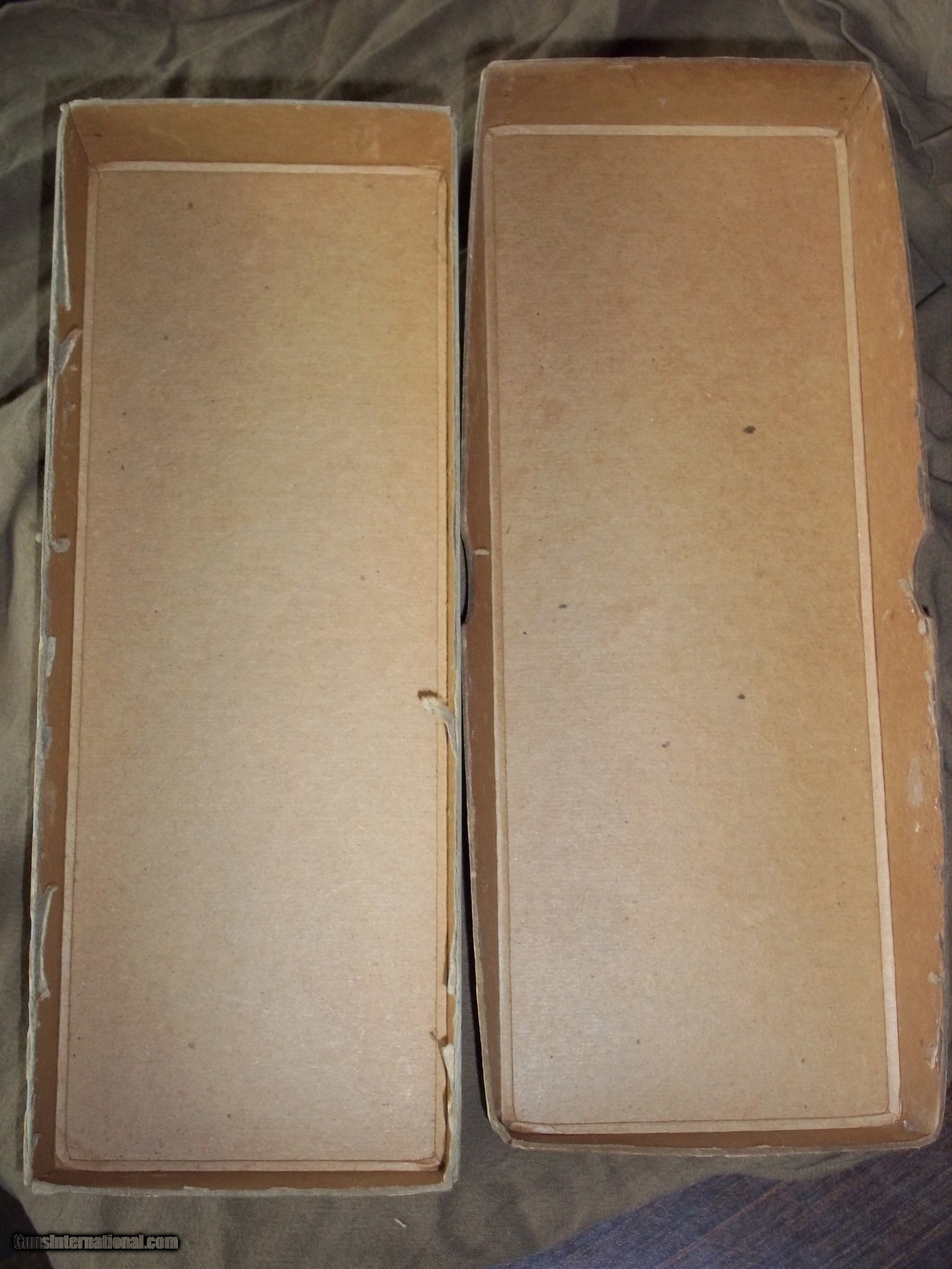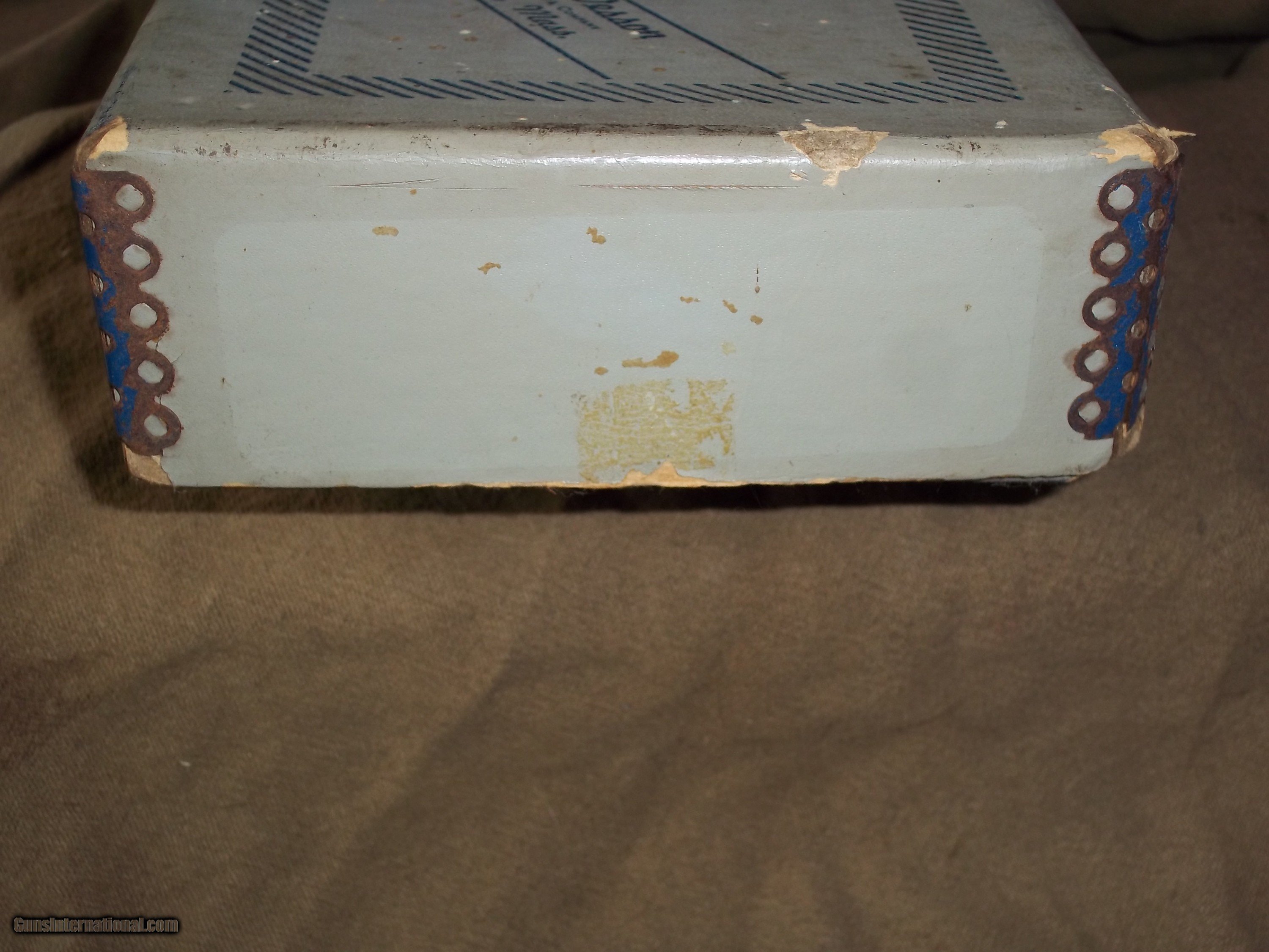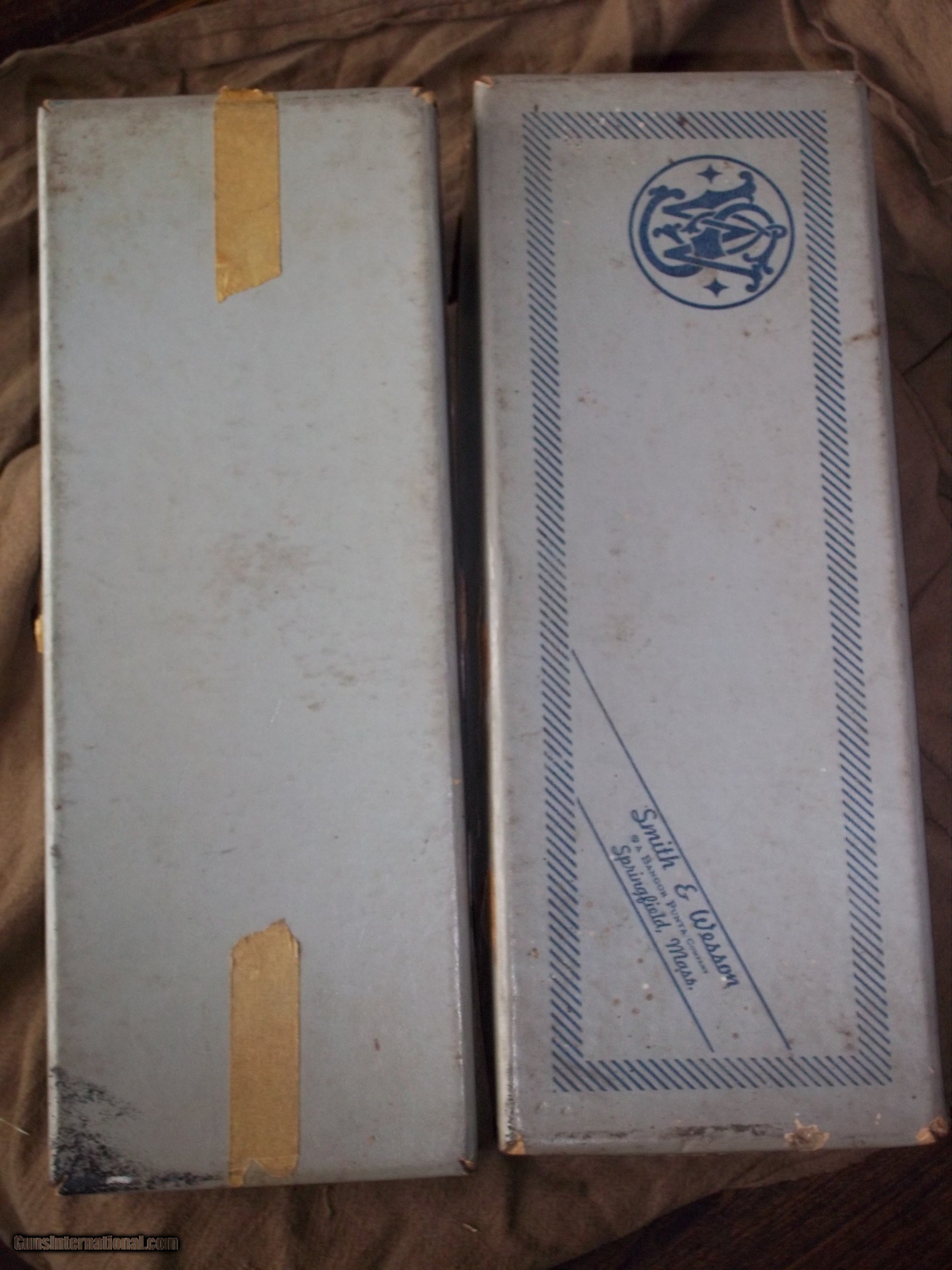 Description: VINTAGE BOX MEASURES 13" X 5" X 1 3/4". BOX ONLY. HELD NICKEL FINISH HANDGUN 4 INCH OR 6 INCH. METAL CORNERS AS SEEN IN PICS. CONTINENTAL USA SALES ONLY. SUBJECT TO SALE ON OTHERSITES. SOLD |