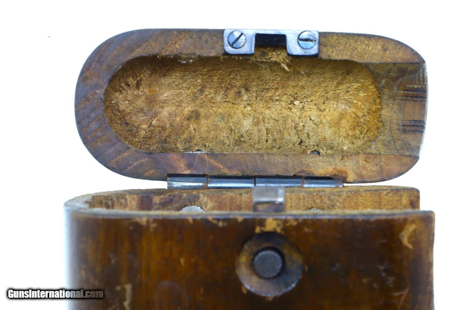 Description: Synopsis: Star M, MD, P, Shoulder Stock, #308, X-259 Description: Exceedingly scarce for the early Star model M, MD, or P pistols, the large framed gun with an arched and slotted palm swell. This example marked with assembly #308. Detailed in the reference text Star Firearms by Leonardo M. Antaris. Condition: VG+ original condition with scattered, noticeable rub marks and handling dings. Original finish hinge and iron in keeping with the overall condition of the stock. Iron likely a period replacement based on the gap between the arms of lug and wood. SOLD Manufacturer: Star Model: M, MD, P Serial Number: 308 |
