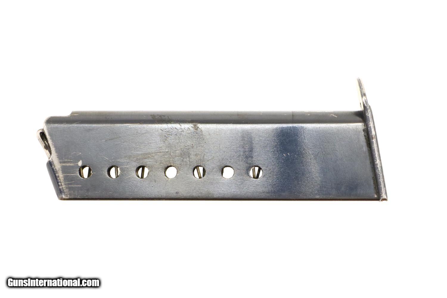 Description: Synopsis: Swiss SIG P210, P49, High Polish Magazine, X-220 Description: Swiss SIG P210, P49, original high polish magazine. Correct for P210-1 and first variation P49. Condition: VG+ as imaged. ~~Insured shipping fee of $35; most packages shipped using FedEx 2nd Day.~~ SOLD Manufacturer: SIG Caliber Info: 9mm |