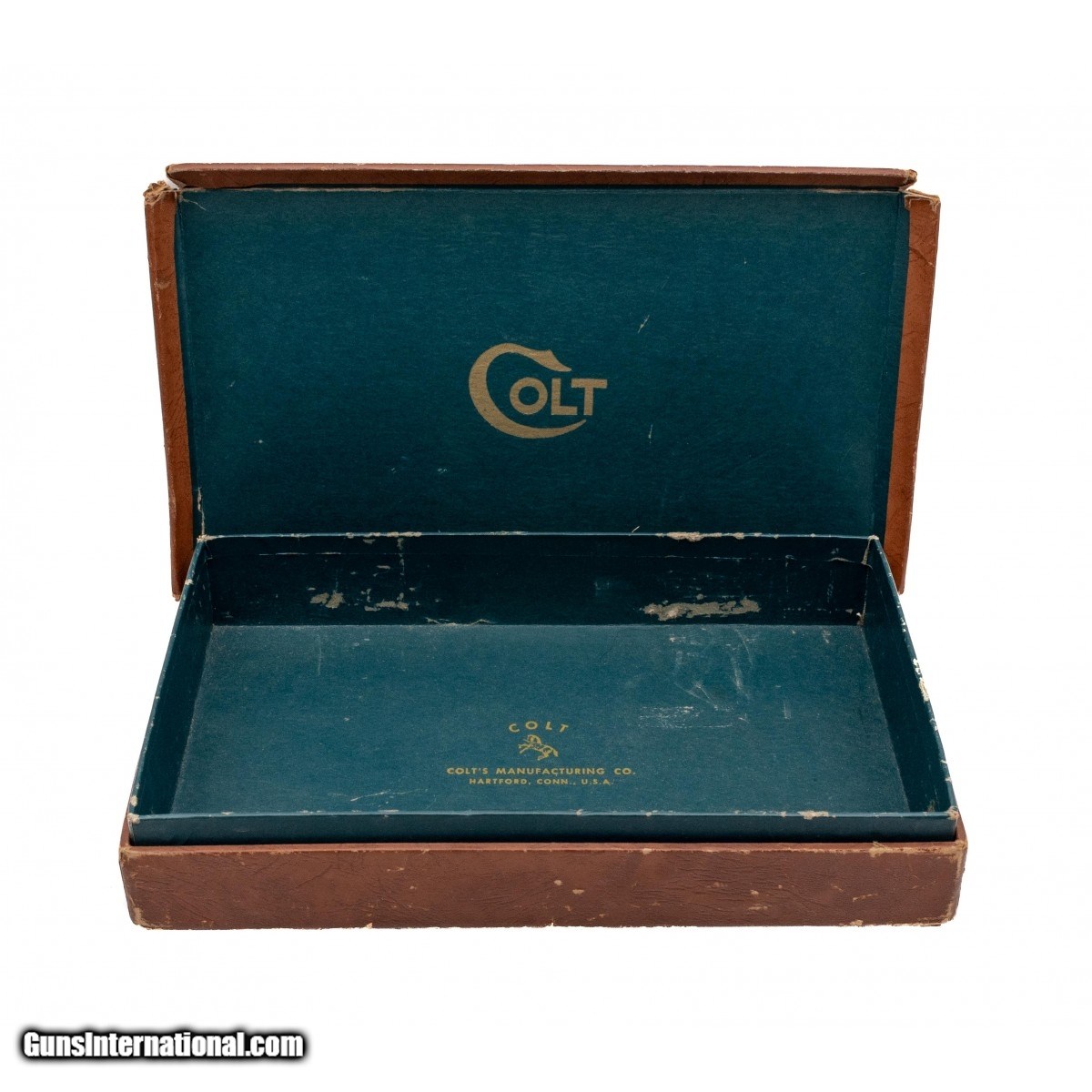 Description: " 1950s Colt .357 revolver factory box. Lid has been dethatched, has wear, and corners are split. Overall in fair condition. SOLD |