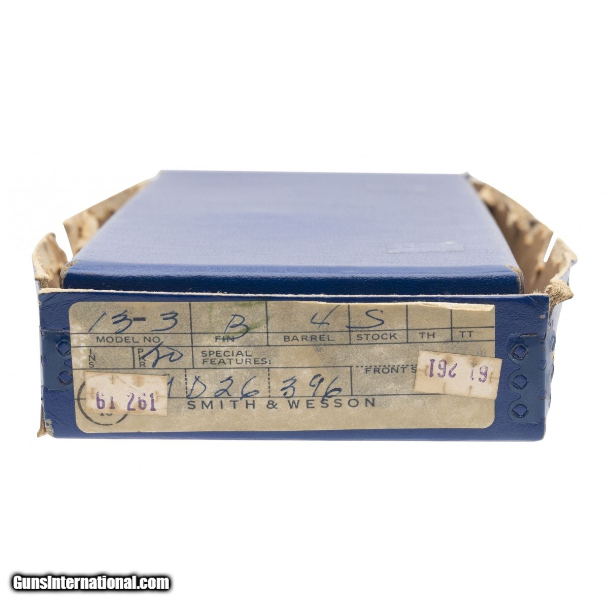 Description: " 1970s era Smith & Wesson Bangor Punta model 13-3 .357 military & police revolver with a 4"" barrel and blue finish factory box. Comes with ammo guide and manual. Has split corners and is starting to peel. Overall in fair condition. SOLD |