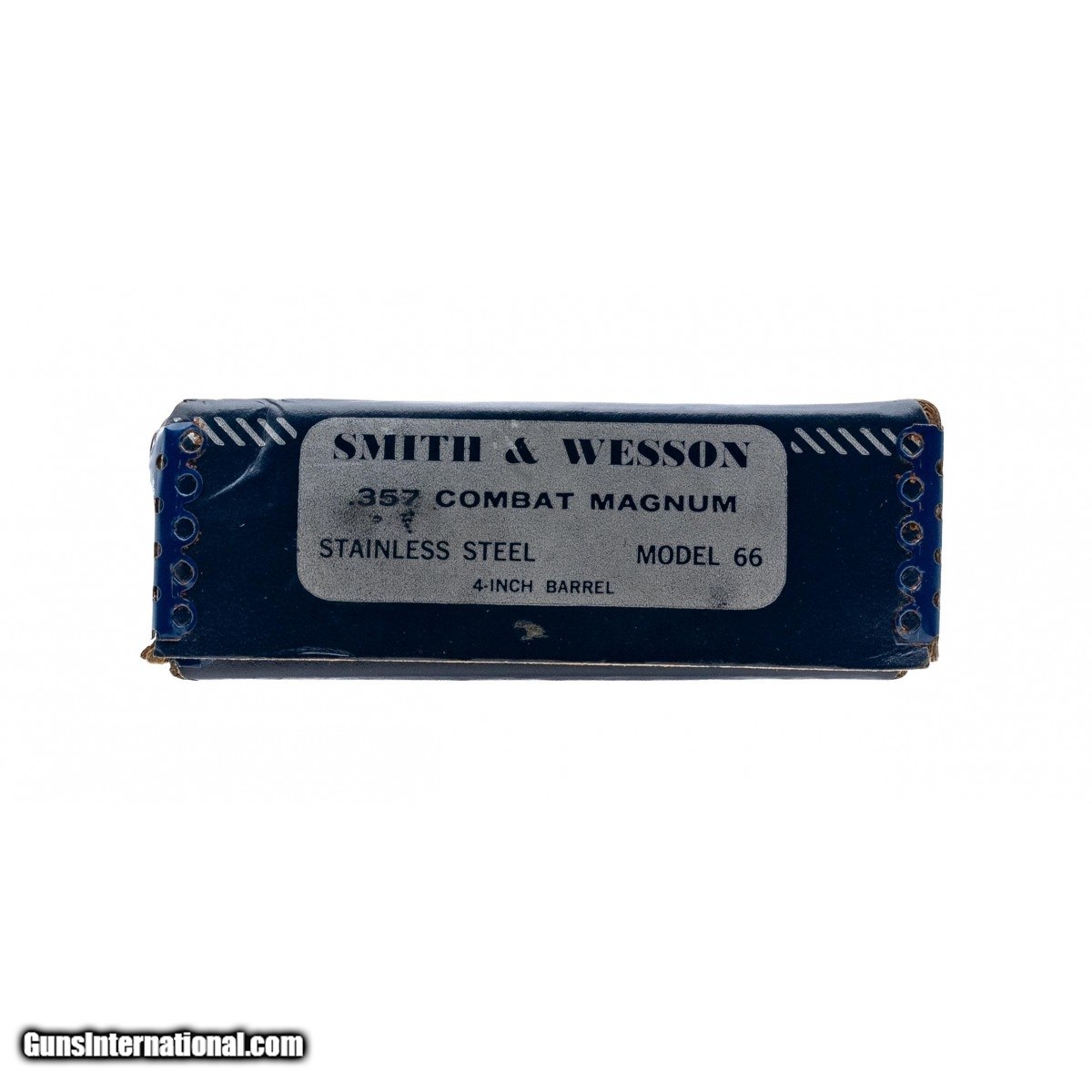 Description: " Bangor Punta Smith & Wesson box for a model 66-1 4"". Comes with parchment paper overall very good condition. SOLD |