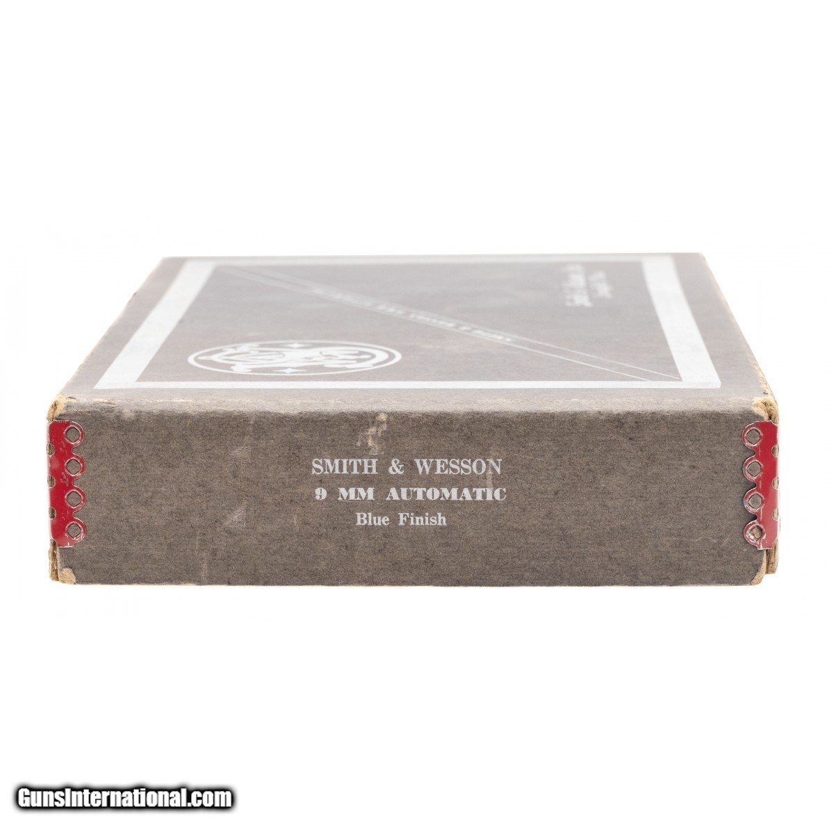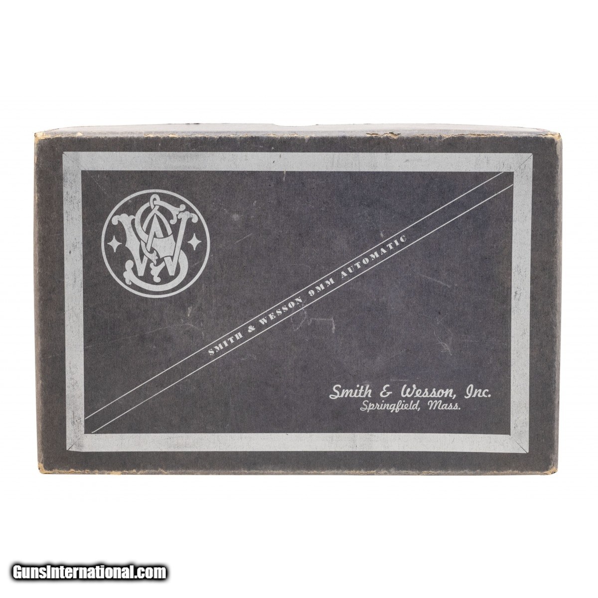 1950s era Smith & Wesson factory box for 9mm automatic with blue finish. Has some wear. Overall in very good condition.