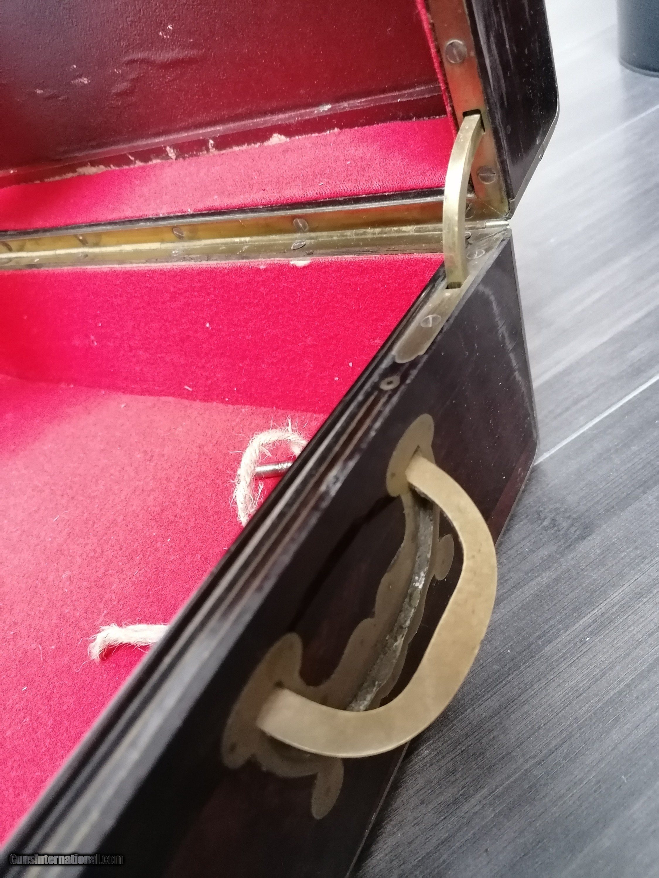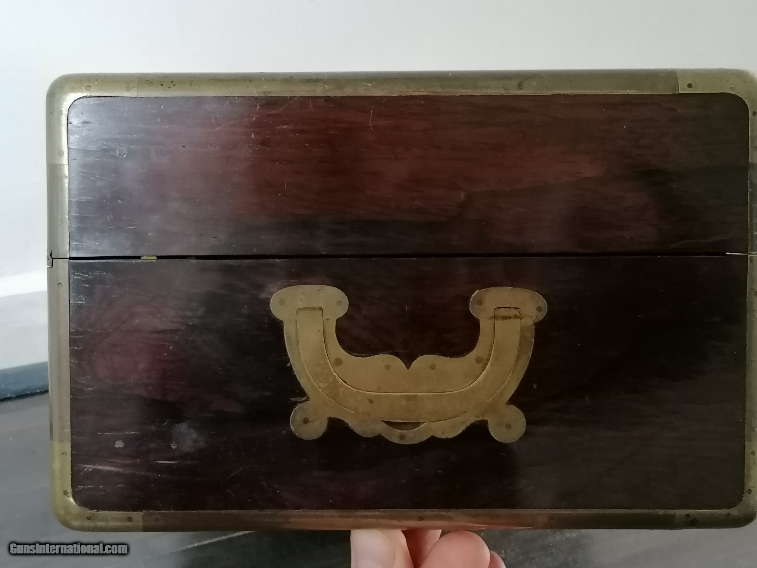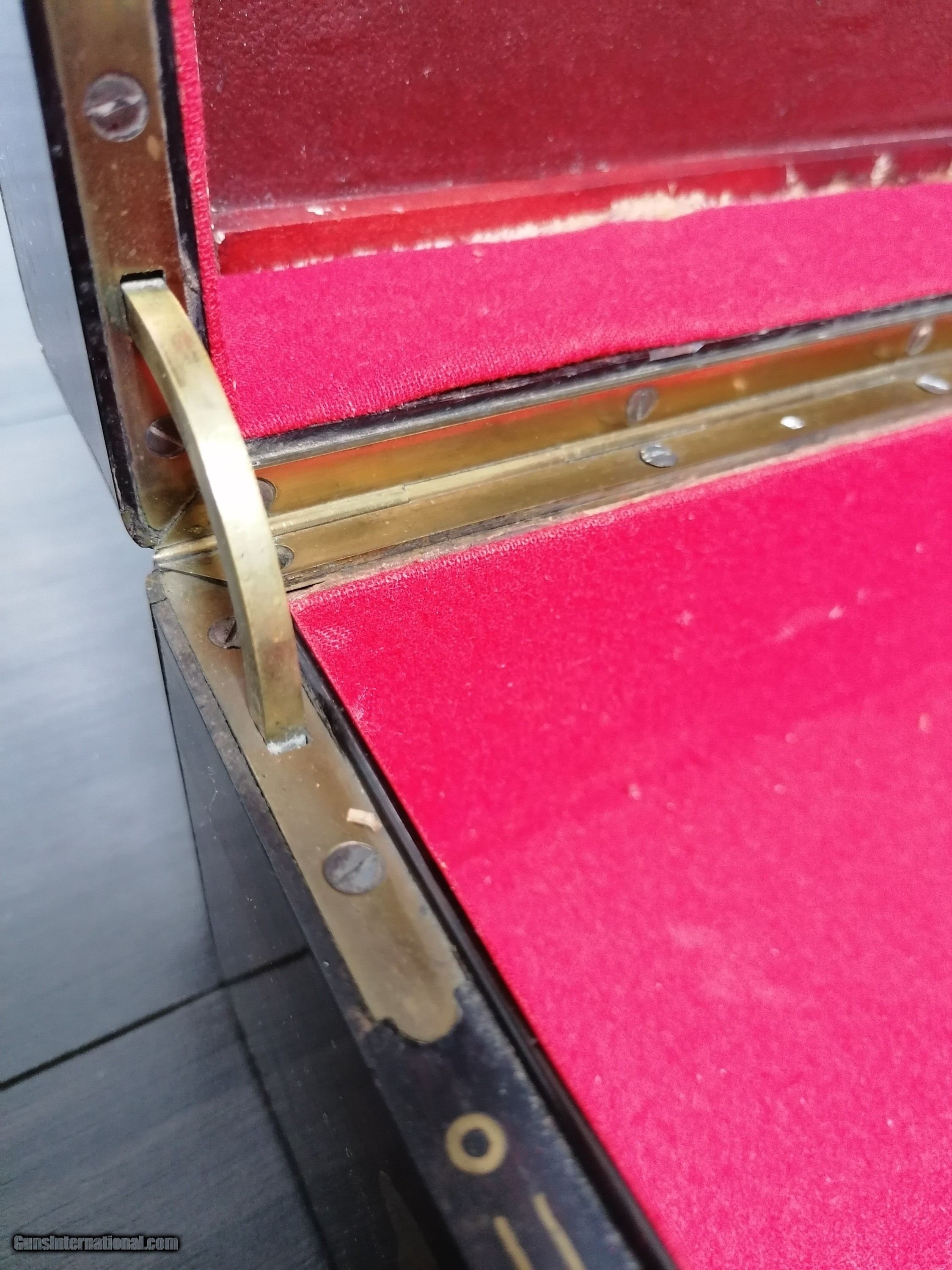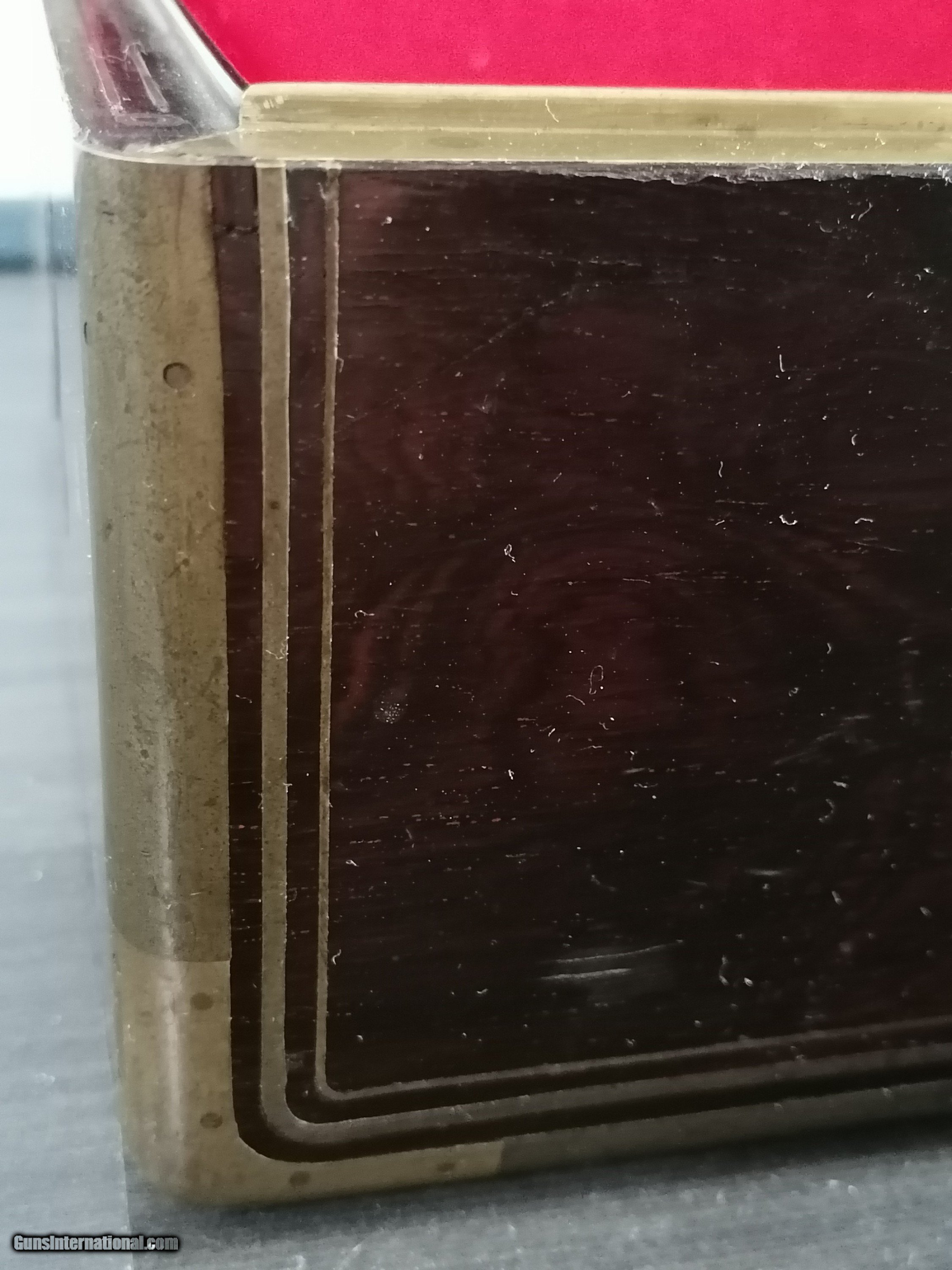 Description: Antique wooden box Napoleon II period with brass and ebony Engraved: Caulin Fab 131 Palais Royal Paris 23 x 32 centimeters Small slot on the top to restore H.R letters engraved Red fedora inside with an hidden pocket in the bottom Small key to lock, it needs oil, but it works Shipping cost from my place to your address in USA costs around 65 USD with a tracking number+insurance, delivery time: 5 to 7 days by FEDEX SOLD |