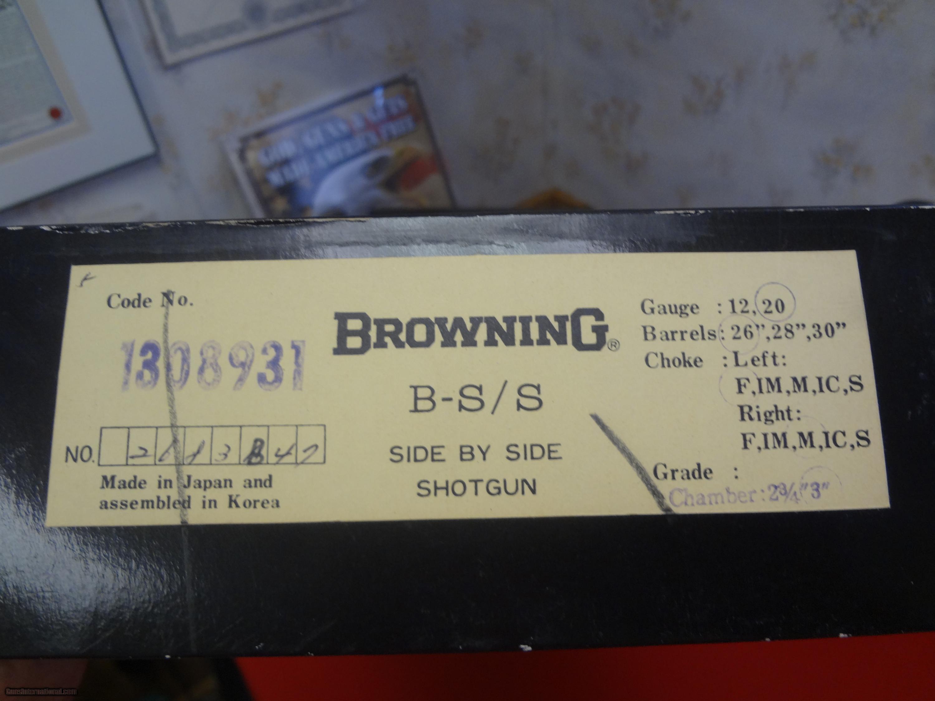 Description: A box for a browning side by side, made in japan, 20 ga. 26" barrels, no papers, condition about 98%. add 15.00 for postage and wrapping. SOLD |