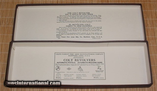 Description: I am listing a really hard to find item---It is the Colt Box for the RARE Colt Camp Perry 22lr single shot pistol Pistol---Heck this box is harder to find than the pistol itself. This Camp Perry pistol was only made between 1926-1941--- I have been lucky enough to find and purchase a limited Qty of these rare and hard to find boxes---They look brand new and are in near mint condition!!! Shipping is FREE in the USA--I will ship Internationally--But International customer pays actual shipping charges to his or her country!!!------Read my feedback everyone is always happy with their purchase and I offer a 100% money back guarantee plus your postage back to me if your not 100% happy with your purchase Tks Dennis SOLD |