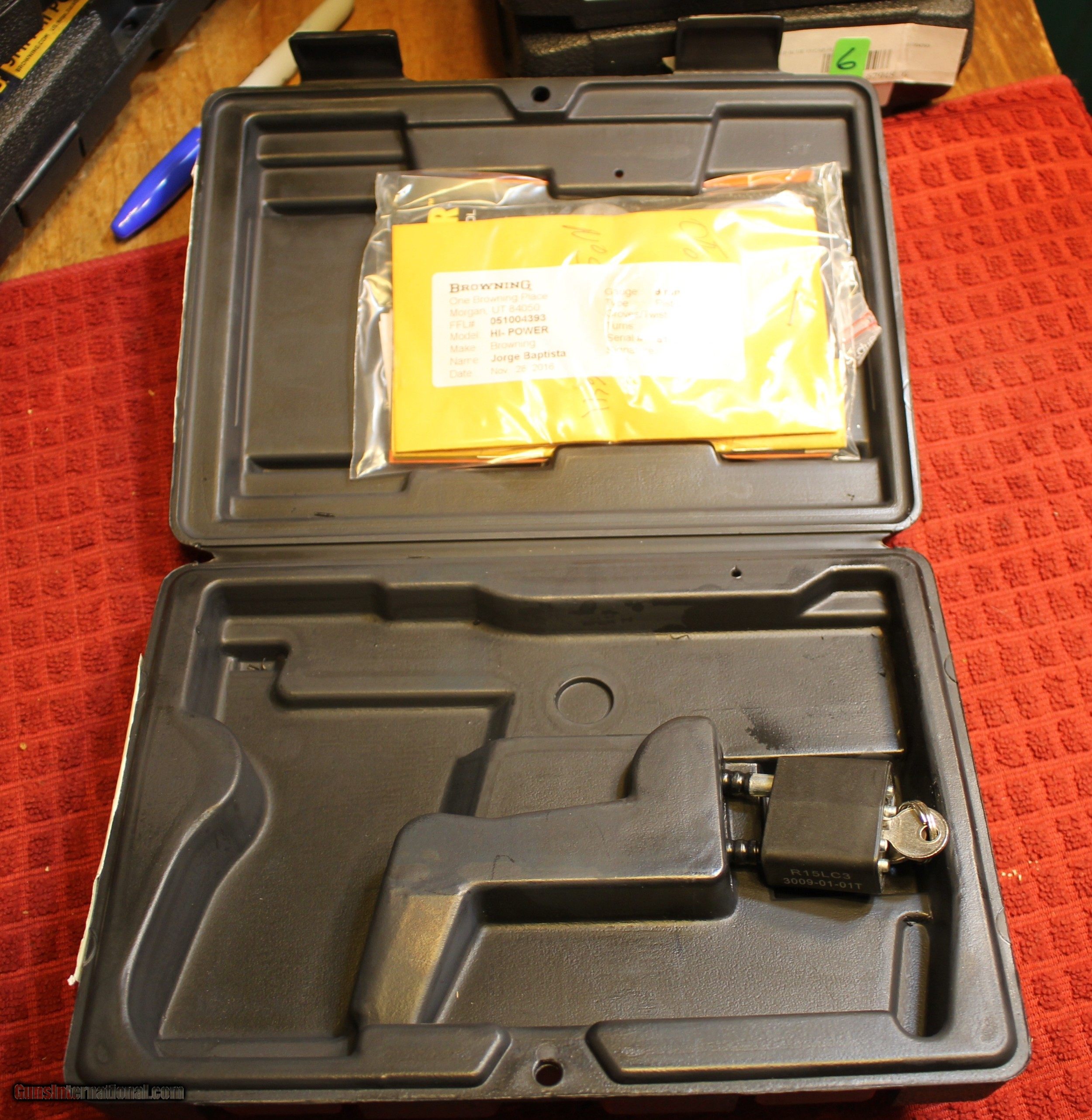 Description: Got a Factory Browning Hi Power BHP Black Plastic Box Empty Modern. Will fit either the 9mm or 40S&W NOTE: As is means AS IS. Look close at the pictures as the box you see is the one you get. There is NO, Refund. This all came from one of the estates mentioned below. Credit Cards add 3.5% and Credit by Phone. Personal checks, Money Orders, Certified Funds. Listing is aready discounted for any payment other than Plastic in any form shape or manner. Shipping is $8.60 for Priority Mail Rate This item from one of five (5) seperate estates of an FFL/SOT Gun Smith, Gun Stores. This is or was inventory. This is or was part of the collection. Please check the pictures to check condition. There will be countless other listings from this inventory over the next 4 to 5 years. We are selling for the each. We did NOT buy out. This is NOT a liquidation. There are no lists and will be no lists. Just keep checking the other listings. We list as time permits as all of 5 of us closed our doors. You are welcome to check out our webpage or facebook page at P&T Partners Price is for Paper meaning, Personal Checks, Business Checks or Certified Check or USPS Money Orders. We do NOT Hold until clear for Personal Checks Credit or Plastic in any form, shape or manner add 3.5% NOTE: Credit by PHONE only I post on many of the firearms forums as PT-Partners. This is a Retail Transaction, as PT-Partners is a Retail/FFL Dealer. For those that are local, there is no Face To Face. On Line means On Line. Again if you are Local there is NO local pick up. We ship only Also, Texas Residents know you are responsible for the Texas State Sales Tax. SOLD |