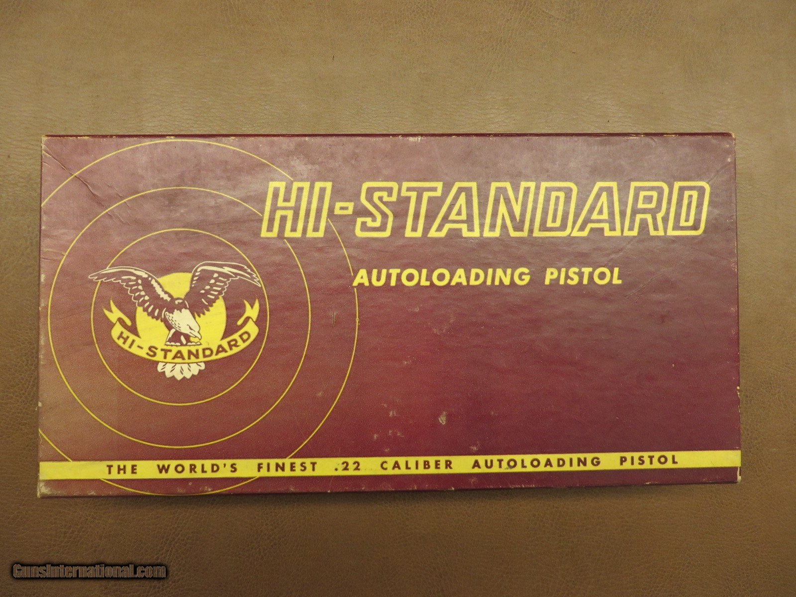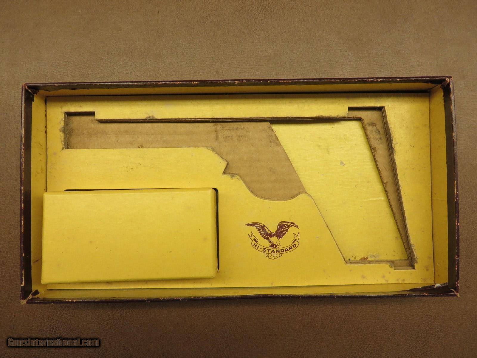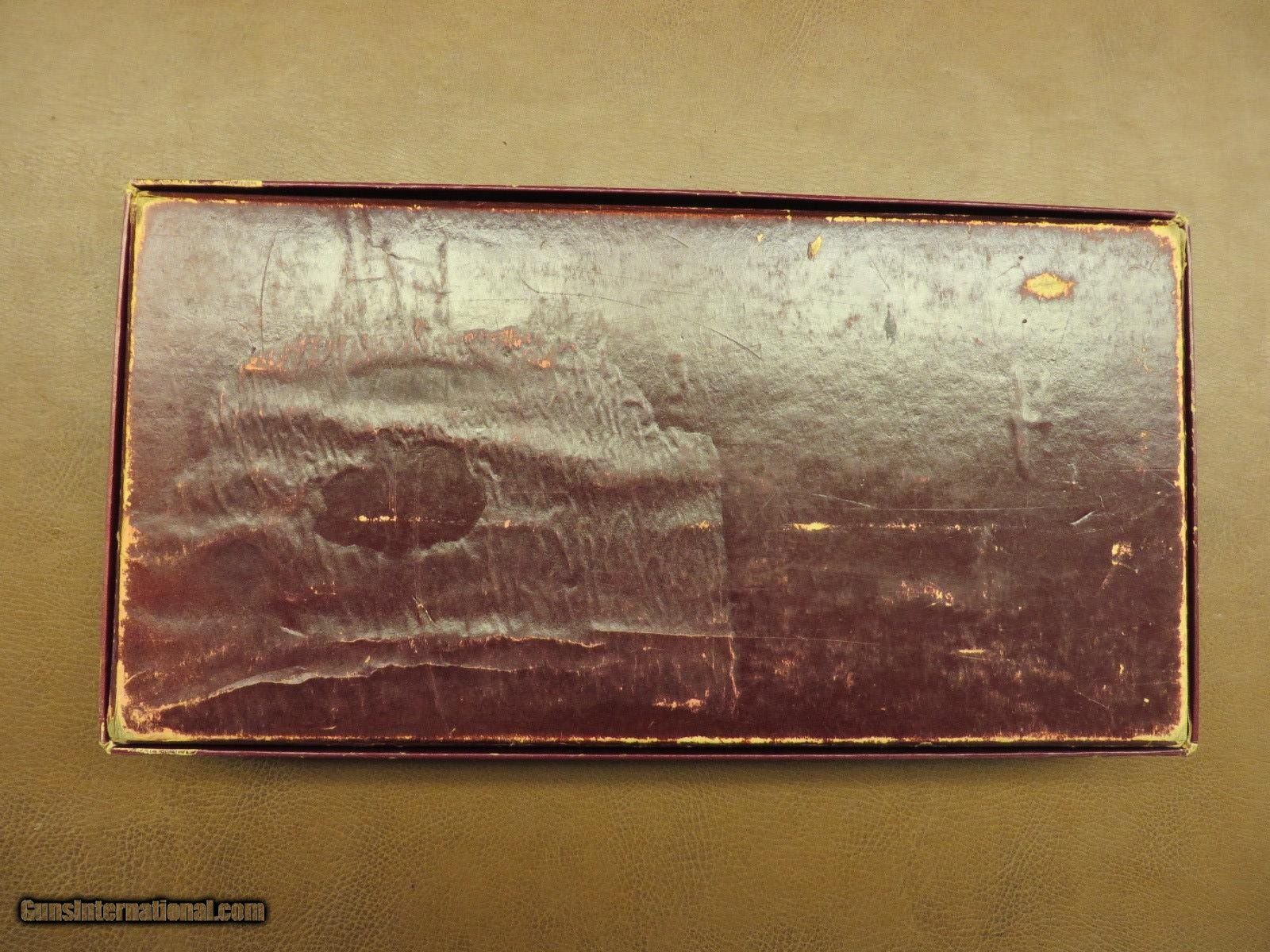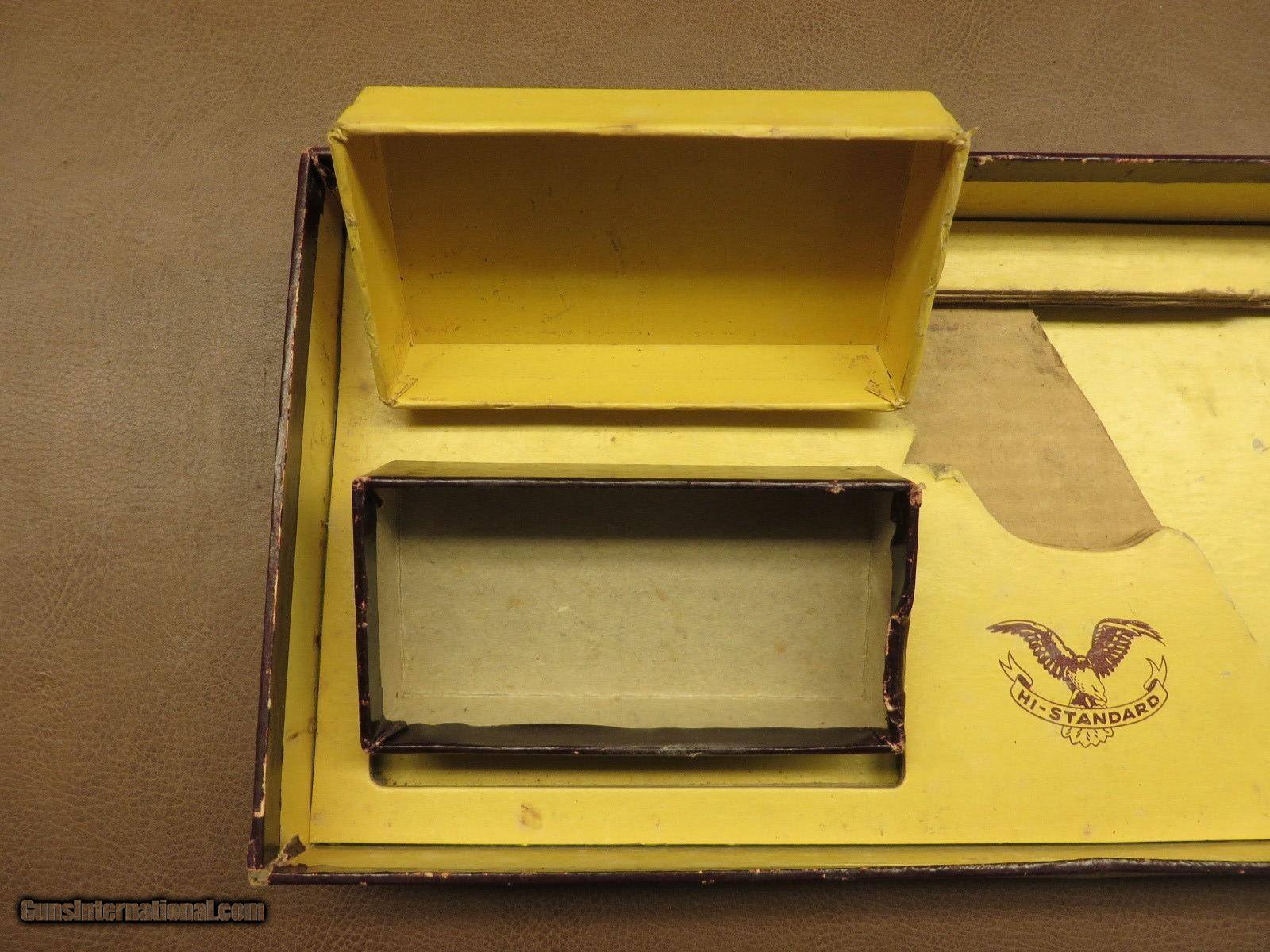 Description: Maroon and yellow box for target pistol has cutout for gun and also the accessory box. All corners intact. SOLD |