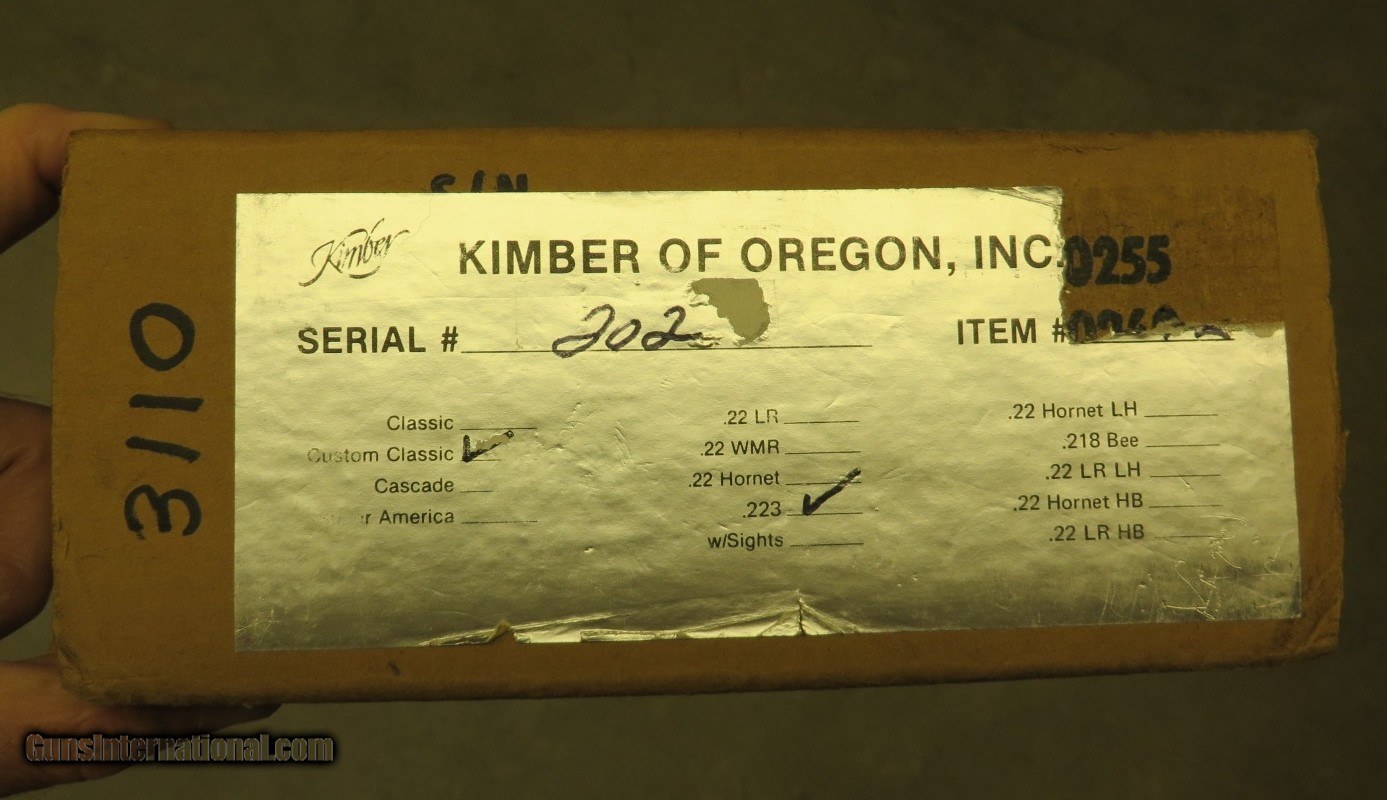 Description: Kimber of Oregon Clackamas Oregon box marked for Custom Classic .223. Nice condition with warranty card. SOLD |