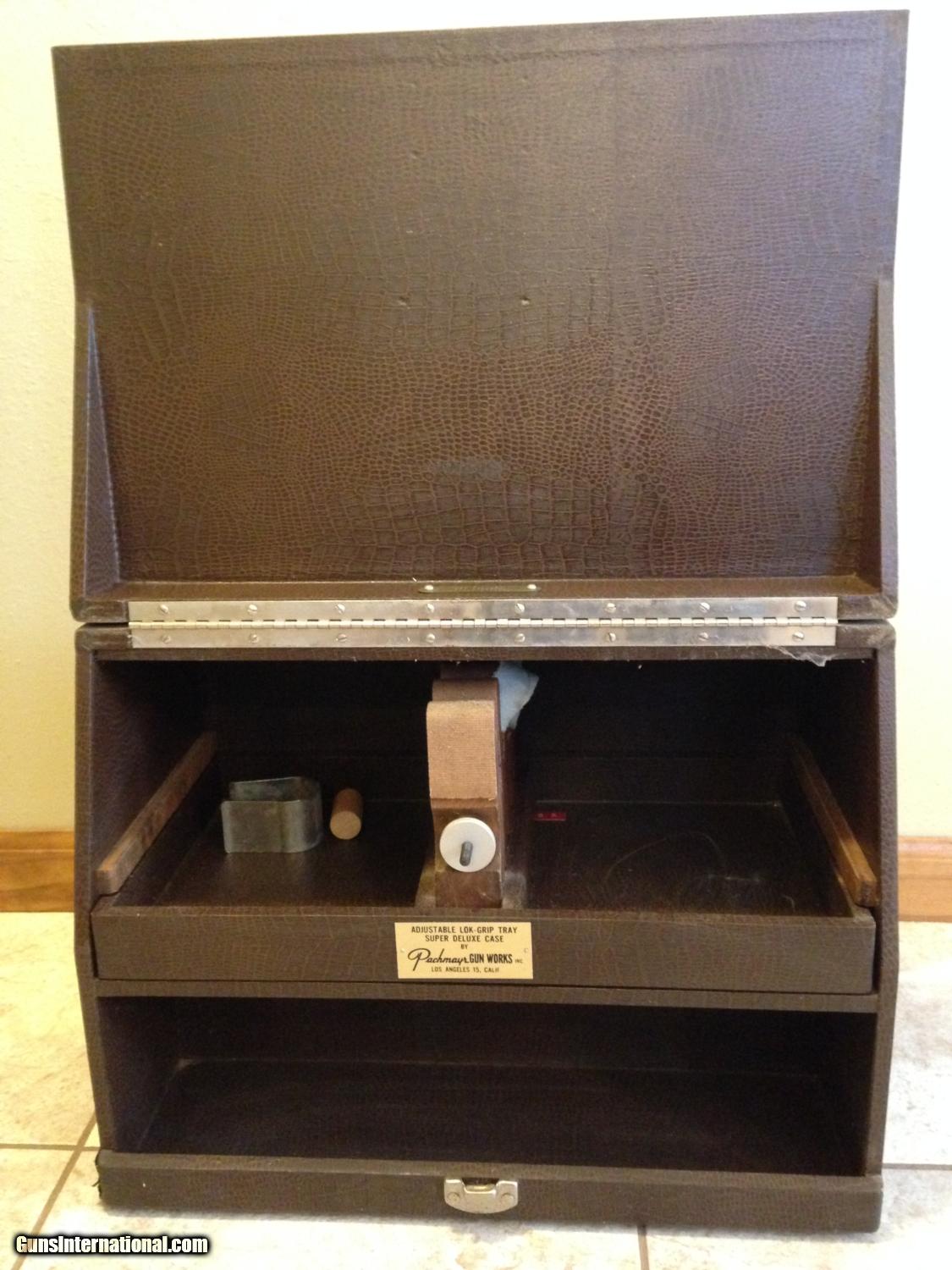 Description: Pachmayr Model Super Deluxe. Classic from the 1960"s. Brown leather-look vinyl covering. 14" h x 18" w x 13" d. Excellent condition. SOLD |