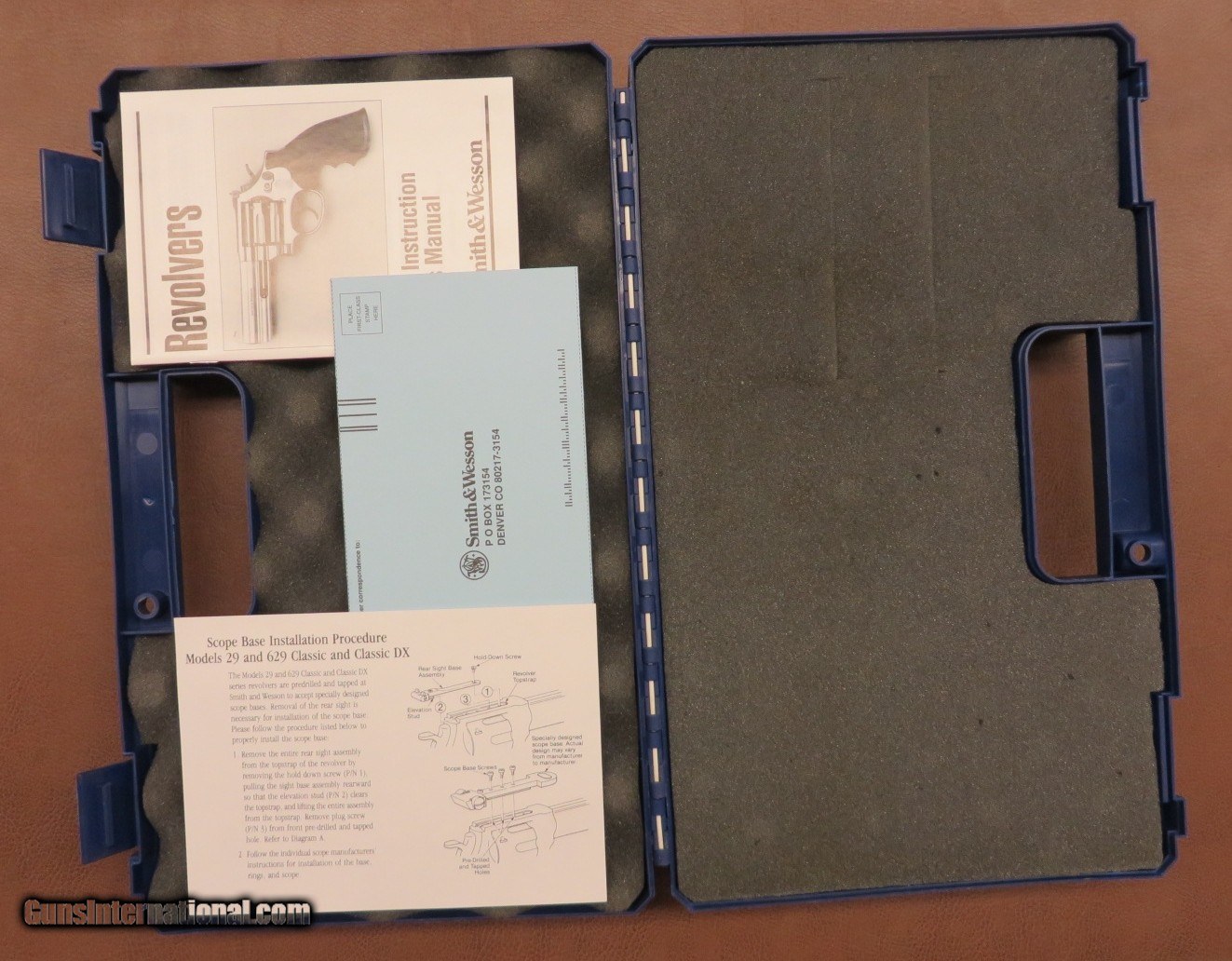 Description: Factory case for Model 629 with 6 1/2 inch barrel. Comes with papers. Measures 14 1/4 by 8 1/4 inches inside. SOLD |