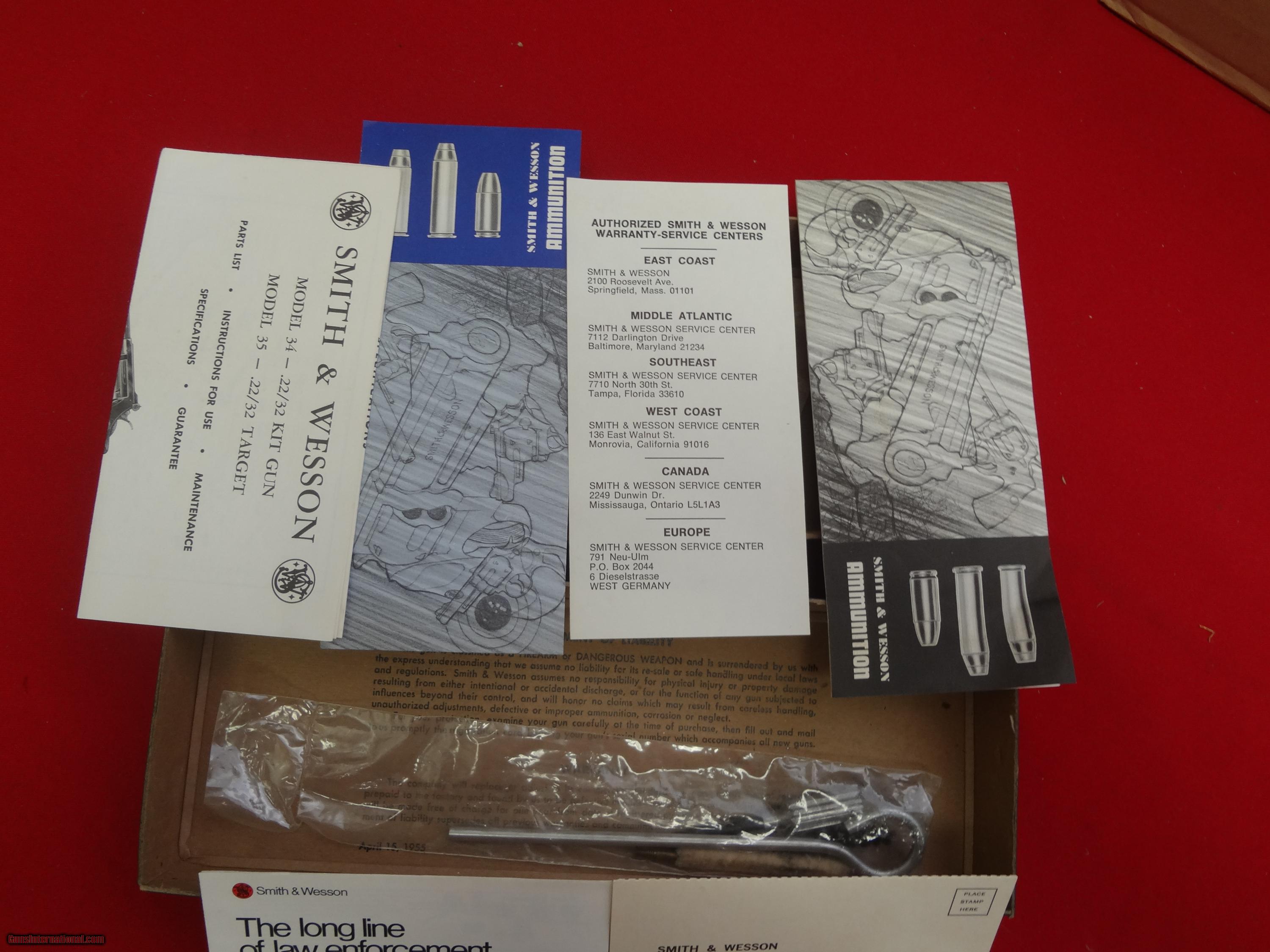 Description: a older gun box from smith / wesson, for a model 35,22 cal./ 32 cal. target revolver, box is in 98% condition, has original cleaning rod and 6 related gun papers. add 10.00 postage, SOLD |