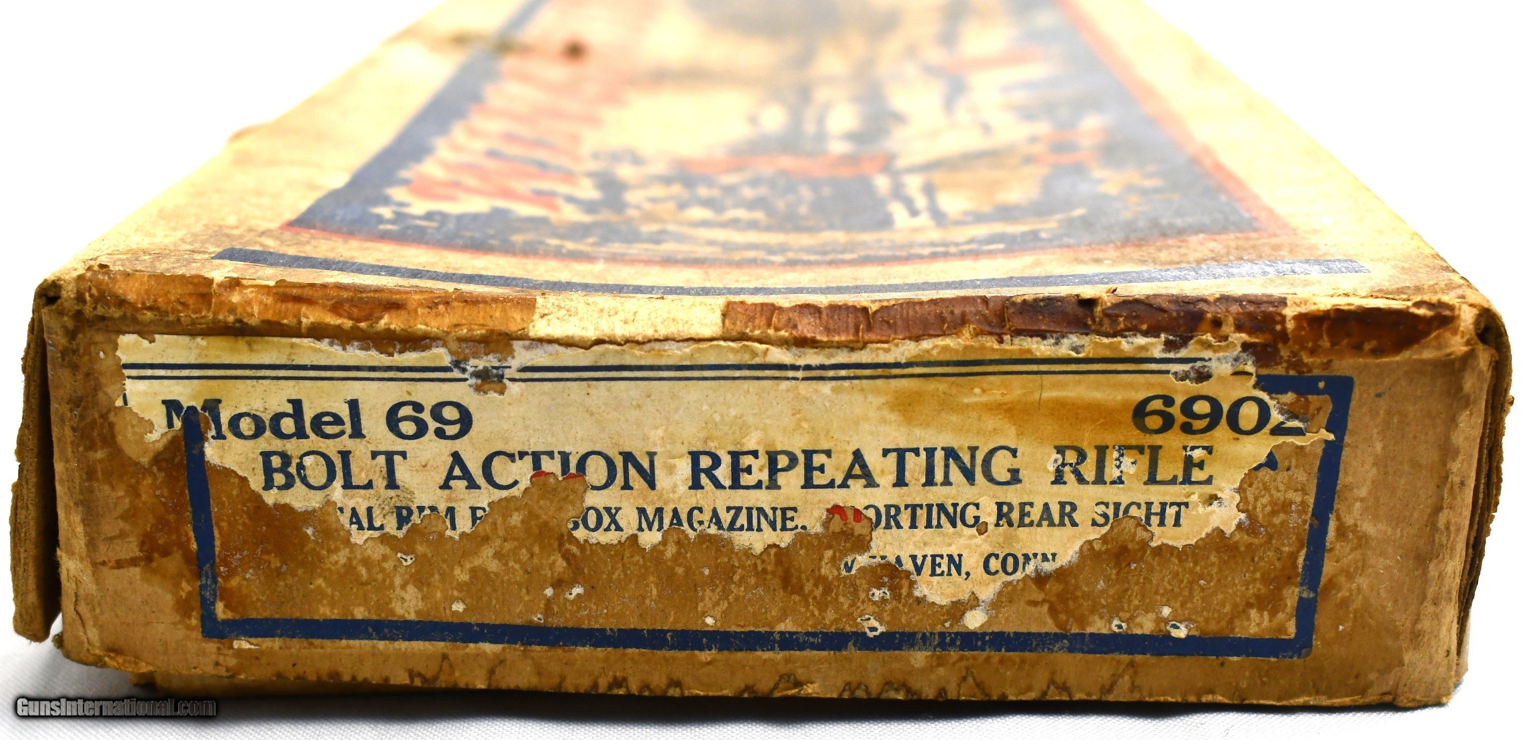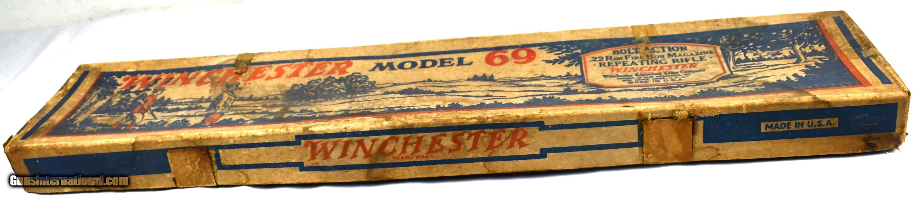 Description: Winchester, Model 69, Factory Picture Box, Instruction Pamphlet, Box, No Gun, Approximately 30 3/4” Long , 6 5/8” Wide, 1 7/8” Deep, Condition: Good, with water stains, dirt, old tape, shipping label, wear.*******************BOX ONLY***********Box2/31TOP***********Box Only*************** *******Free Shipping*********************Layaway Available************************Trades Considered*************Copy of Driver License maybe Required *************** • Payment: We accept United State Postal Service Money Orders or Credit Cards Add 3.5% Service Fee- Visa, MasterCard & Discover.