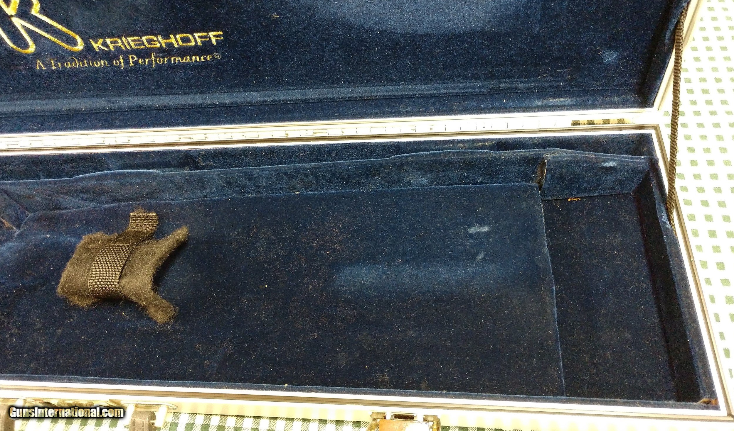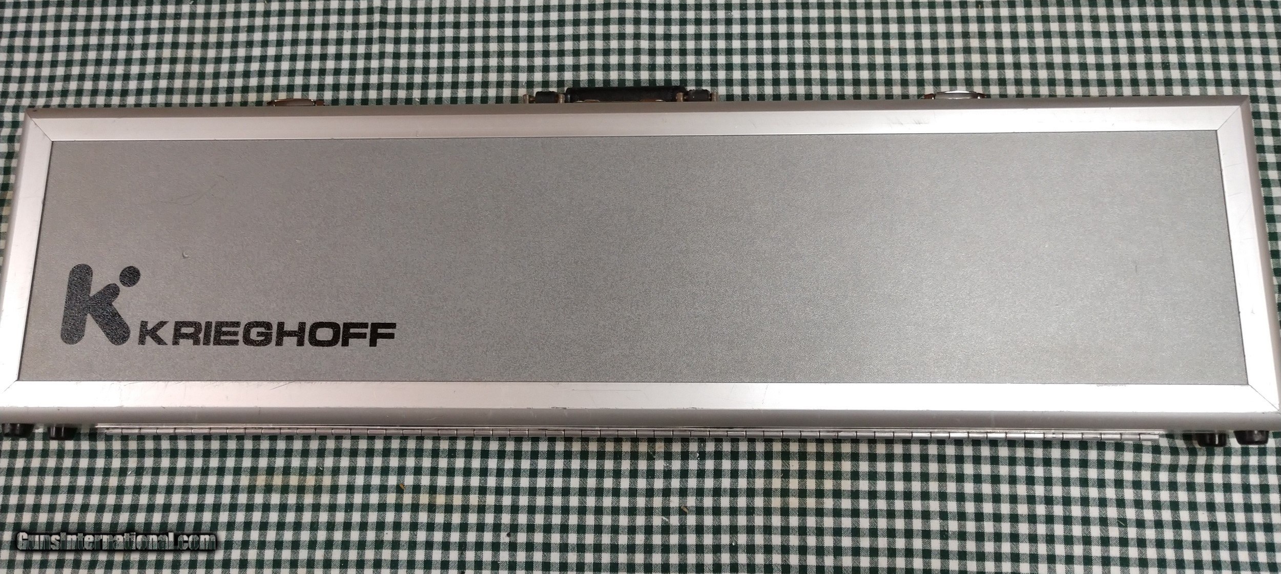 Description: Nice Americase with Krieghoff embroidered in the top. The barrel slot is 33 inches long. It fit a Browning GTI 30" with extended factory chokes and a 30" Krieghoff Sporting barrel with factory style chokes. I do not think it will hold the real high Pro Sporter type ribs. It looks like the previous owner removed a small piece to accomidate a slightly longer butt length. Its a forend off type case. Pictures do a good job of everything else. $30 shipping Sold Pending Funds.... SOLD |
