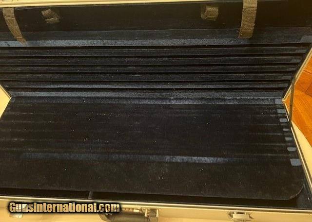 Description: Amreicase Krighoff Two Barrel Shotgun storage case with strorage for six subgauge tubes. Dimensions are 30" L x 13" W x 5 1/4" H. Weight is 21 lbs. Max length of barrel storage is 30 inches. Good condition with normal wear. The case is in sound useable condtion. Sold my carrier barrel barrel and subgauge tubes and no longer need the case. SOLD |
