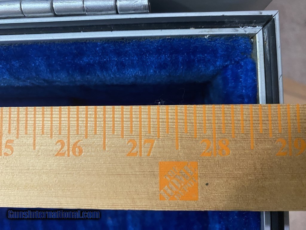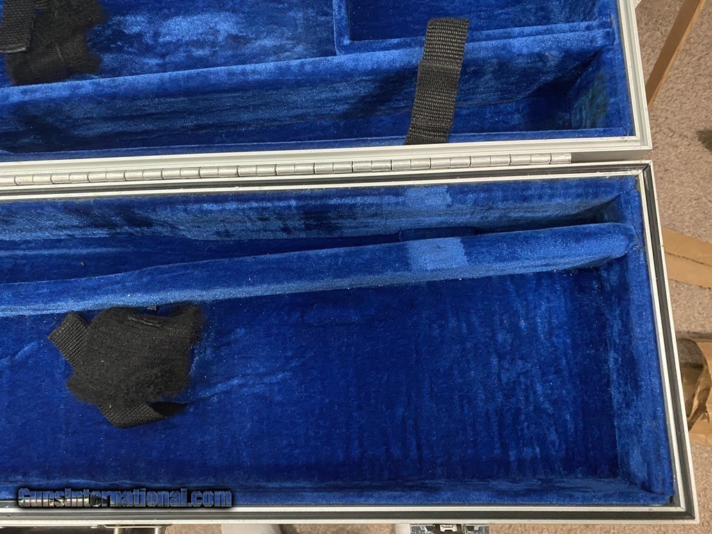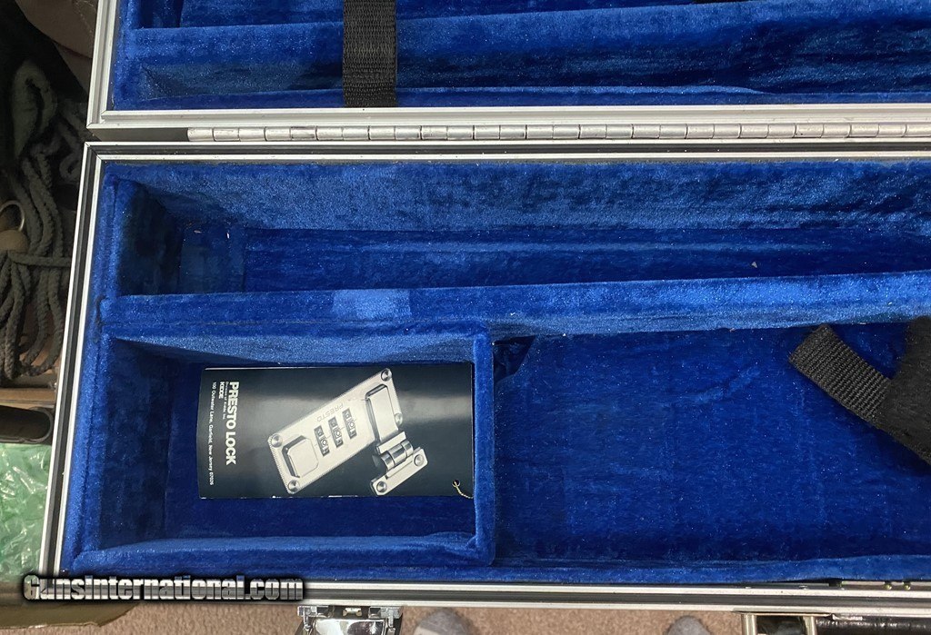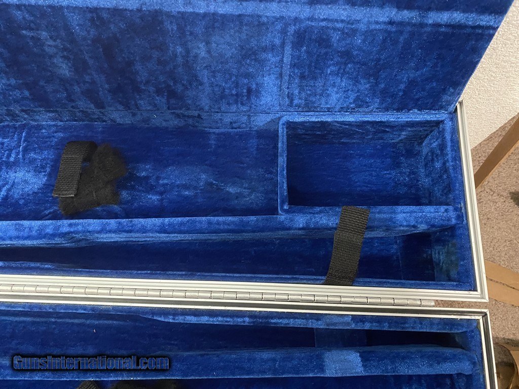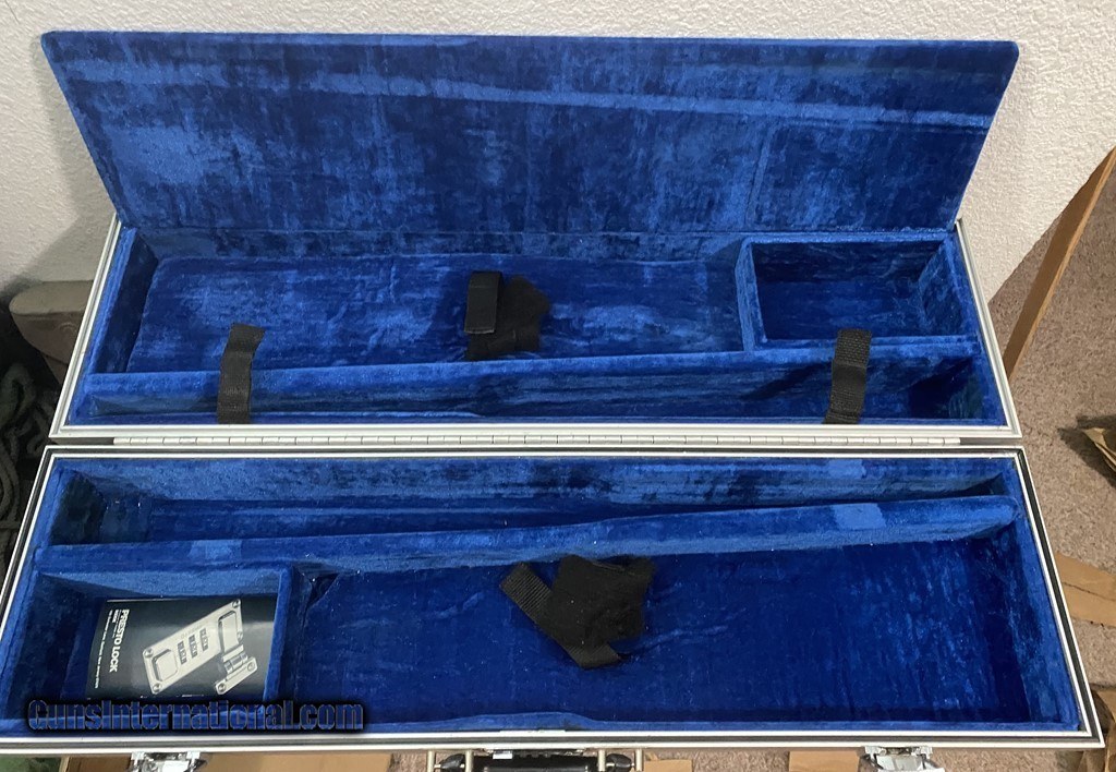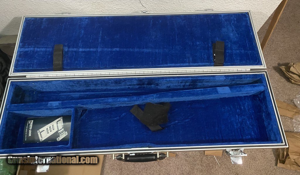 Description: Nice compact Americase two gun case that is set up for a pair of small bore O/U guns with 28" barrels. There are some marks on the exterior from use and the handle leather has some wear but is very solid. This case measures outside 30" x 8" x 6.5". The inside is in perfect condition. One key is included. Please look at the inside measurements in the pictures . Built like a tank case! Shipping is $30 SOLD |