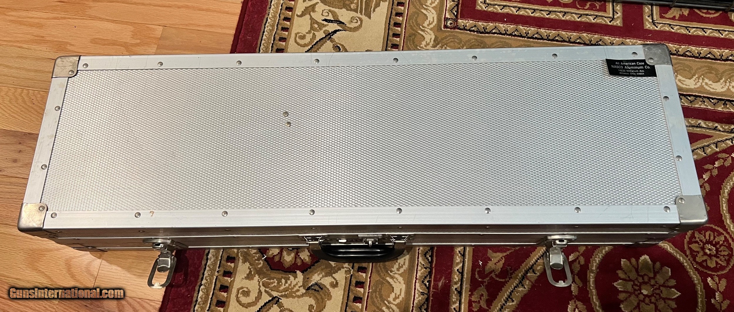 Description: NASCO all American aluminum case Case will accommodate two guns with two barrels up to 34" long. Very good condition Great case to have your primary gun and a backup gun SOLD |