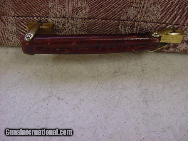 Description: 4272 Winchester Model 23 Grand Canadian CASE, never gun in it, but leather trim is scuffed as shown in pixs, comes with keys, I would say case overall is 95-96% and very hard to find as less than 250 were ever made. Will take up to and including 26.5 barrels. SOLD |
