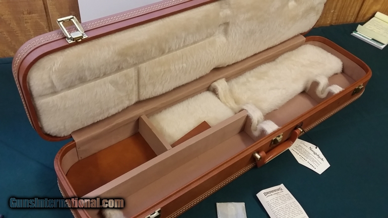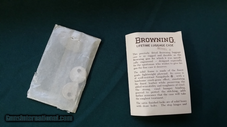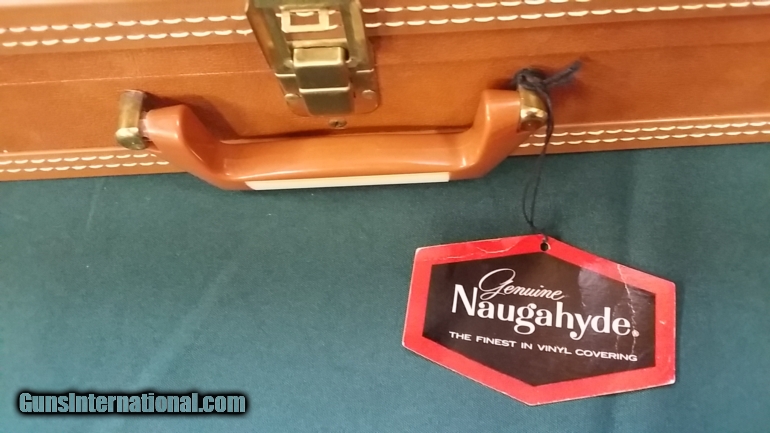 Description: 4750 Browning Hartmann/Airways Brown hard shotgun case NEW. Tan plush interior like new condition. Has the paper hang tag, warrantee book marked Model “S”, and keys brand new never open. Will fit and including 30” barrels. Has the cream color insert handle. From April 1964 for your Belgium Browning superposed and A5 shotgun. Very rare in this NEW condition. SOLD |