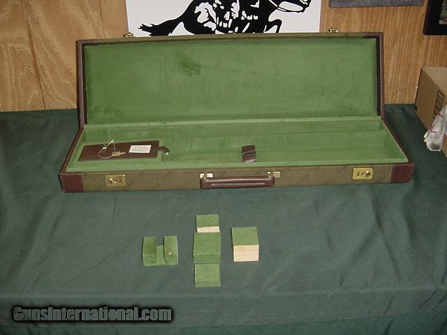 Description: 5029 Winchester Case for 101 or model 23,keys, will take 28 inch barrels, 4 green blocks, case is green with leather trim. Mint Condition. SOLD |