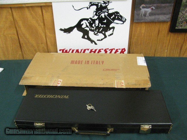 Description: 6943 Winchester 101 case,black and gold WINCHESTER, will take 27 inch barrels, keys, NEW OLD STOCK,NEVER A GUN IN IT. for Winchester 101 and model 23 shotgun, come with MADE IN ITALY, original cardboard shipping box. SOLD |