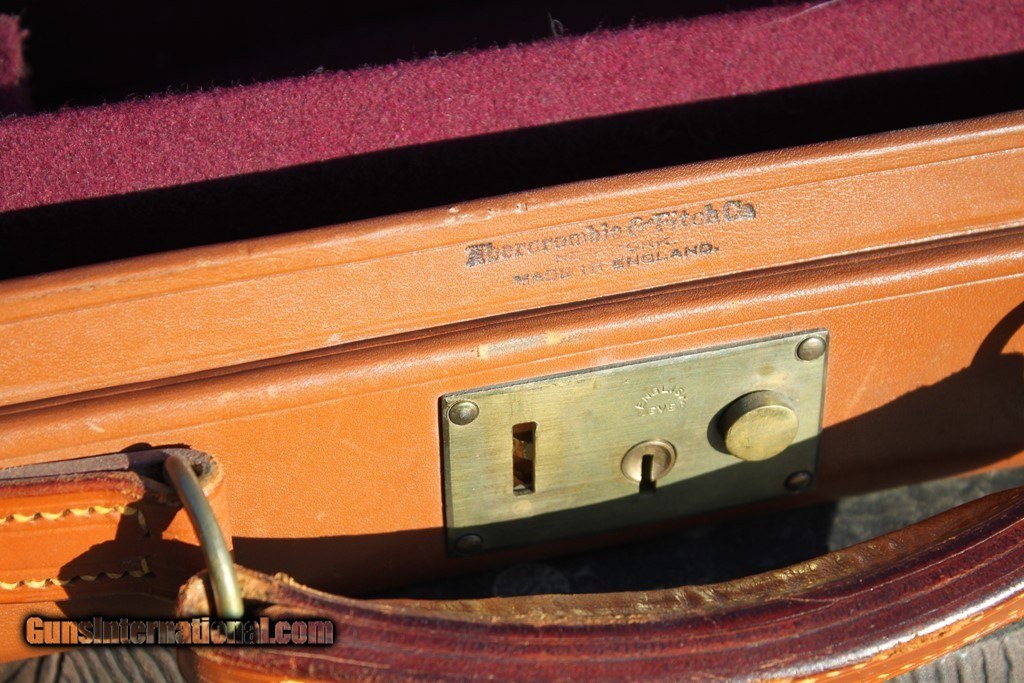 Description: SOLD! English made Abercrombie & Fitch 2 barrel case in excellent condition inside and out. Small marks on the exterior and the inside is very clean. Barrel channels are for max lenght 30.5" and are currently blocked for 30.5" and 28". Originally had a Win 21 Trap/skeet set. Excellent hard to find case! Please see pictures for accurate description and condition. SOLD |