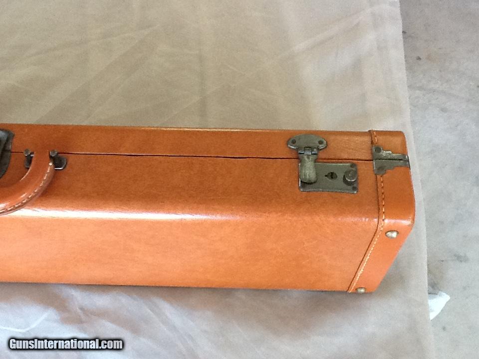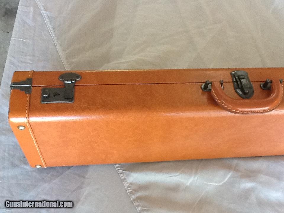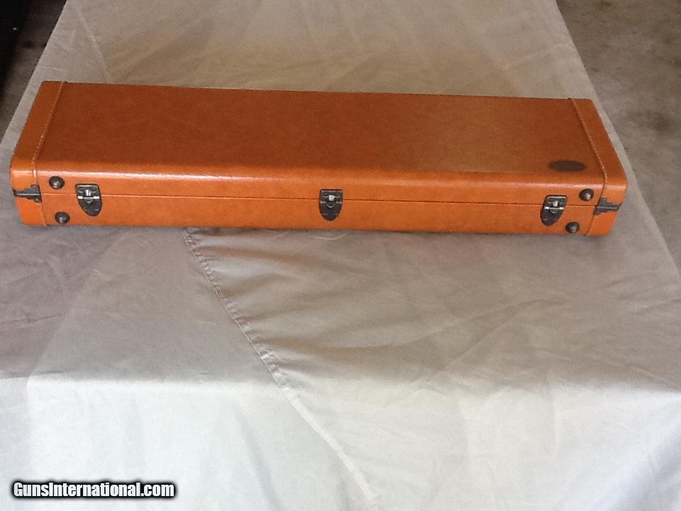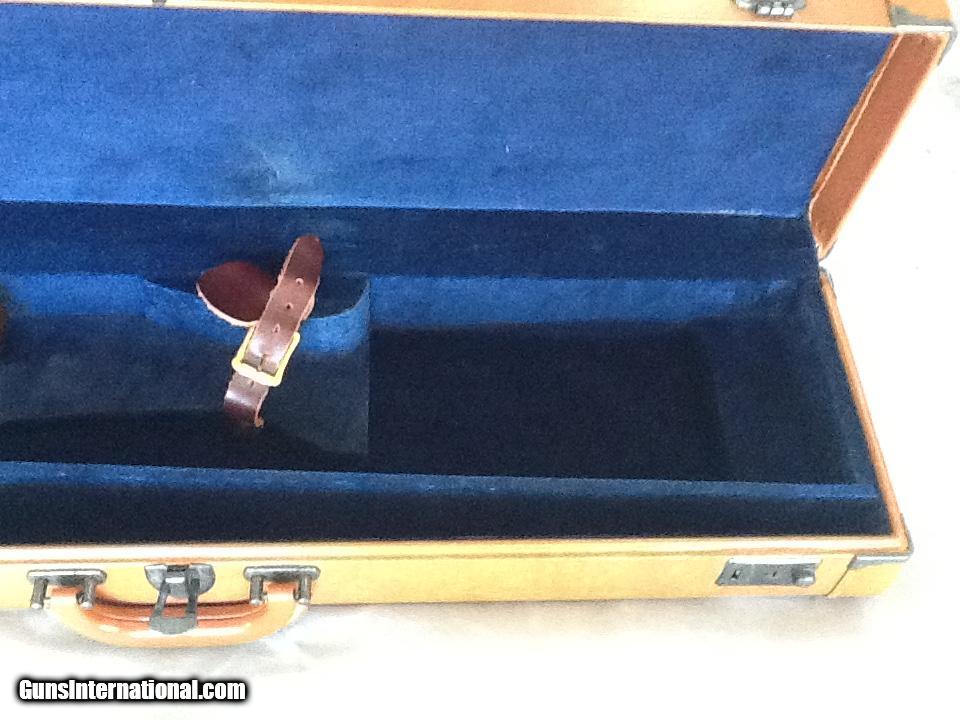 Description: Browning A-5 Tolex case. Will hold up to 28 in. barrel. Very good overall condition inside and out. Buckle strap has pulled off the post inside. Very clean. SOLD |