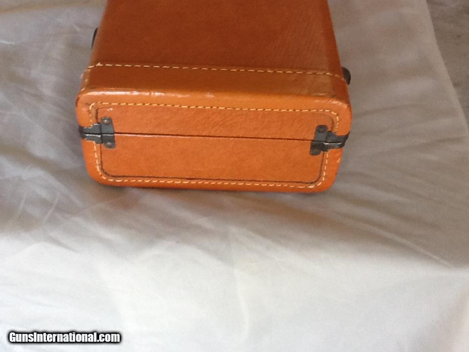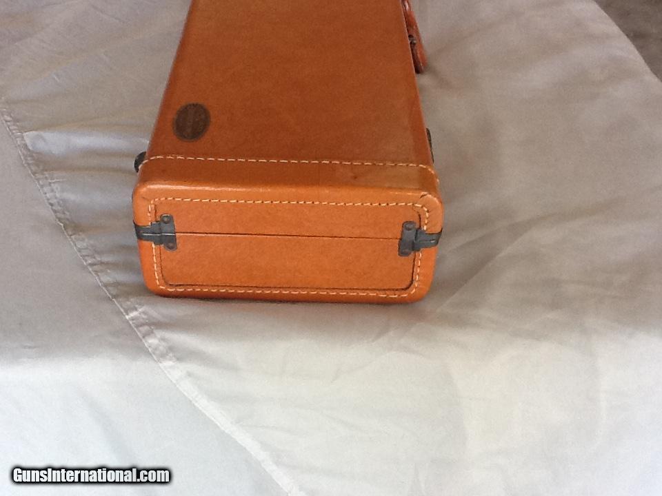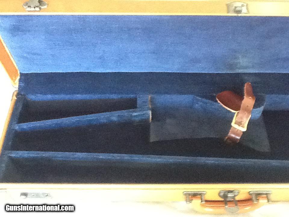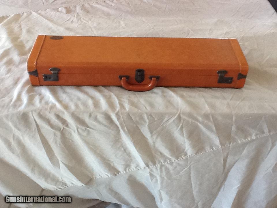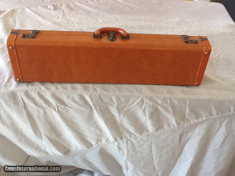 Description: Browning A-5 Tolex case. Will hold up to 28 in. barrel. Very good overall condition inside and out. Buckle strap has pulled off the post inside. Very clean. SOLD |
