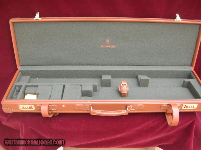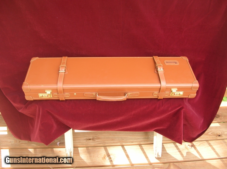 Description: (SOLD PENDING FUNDS)-Browning all leather with straps over/under case. Will accept barrels to 32". 99%-Nice! SOLD |