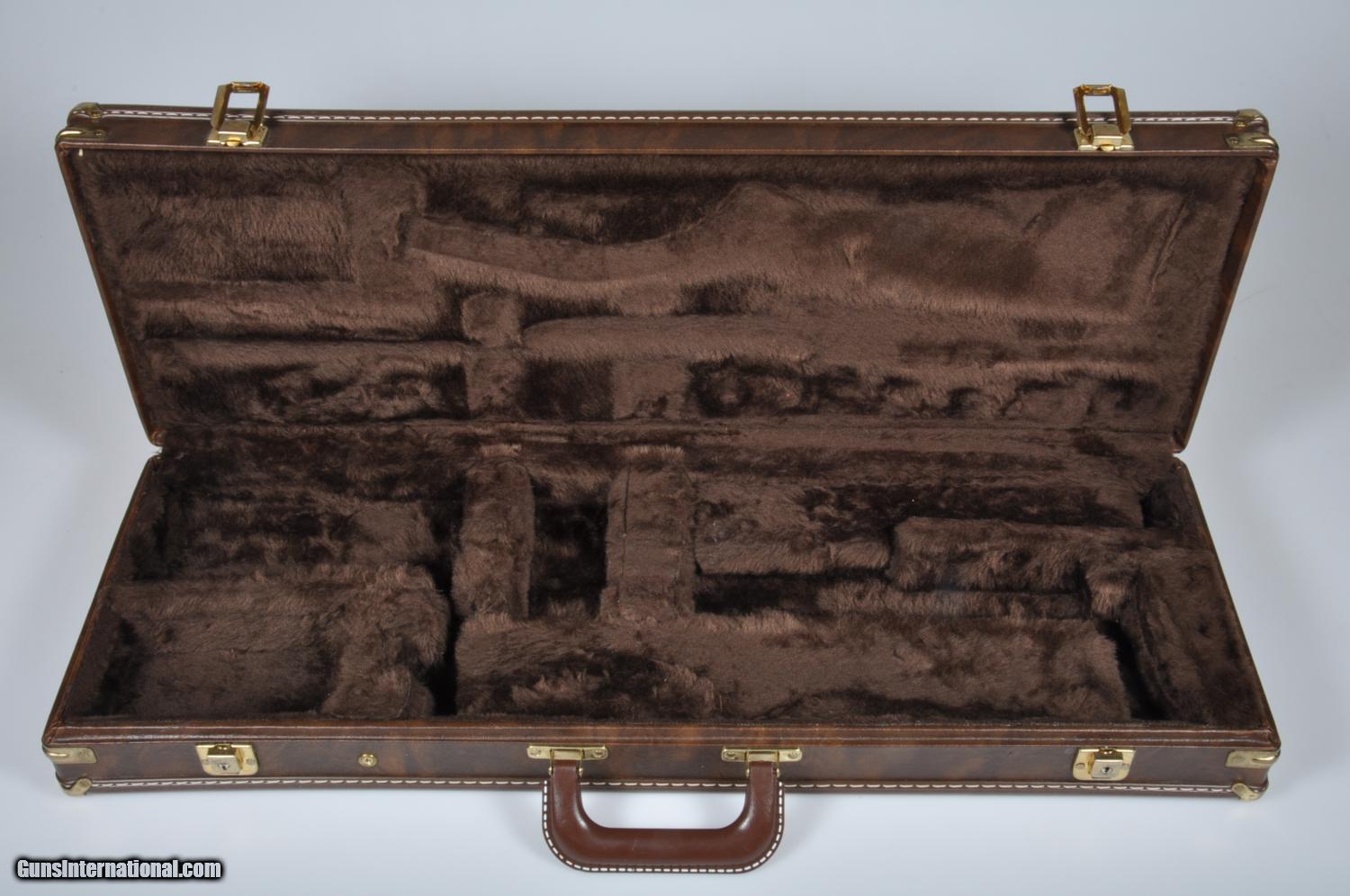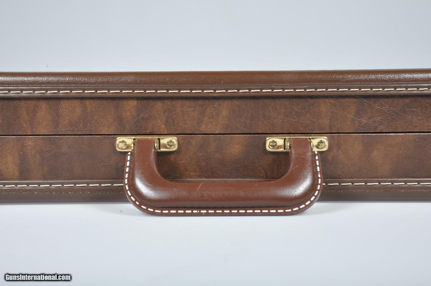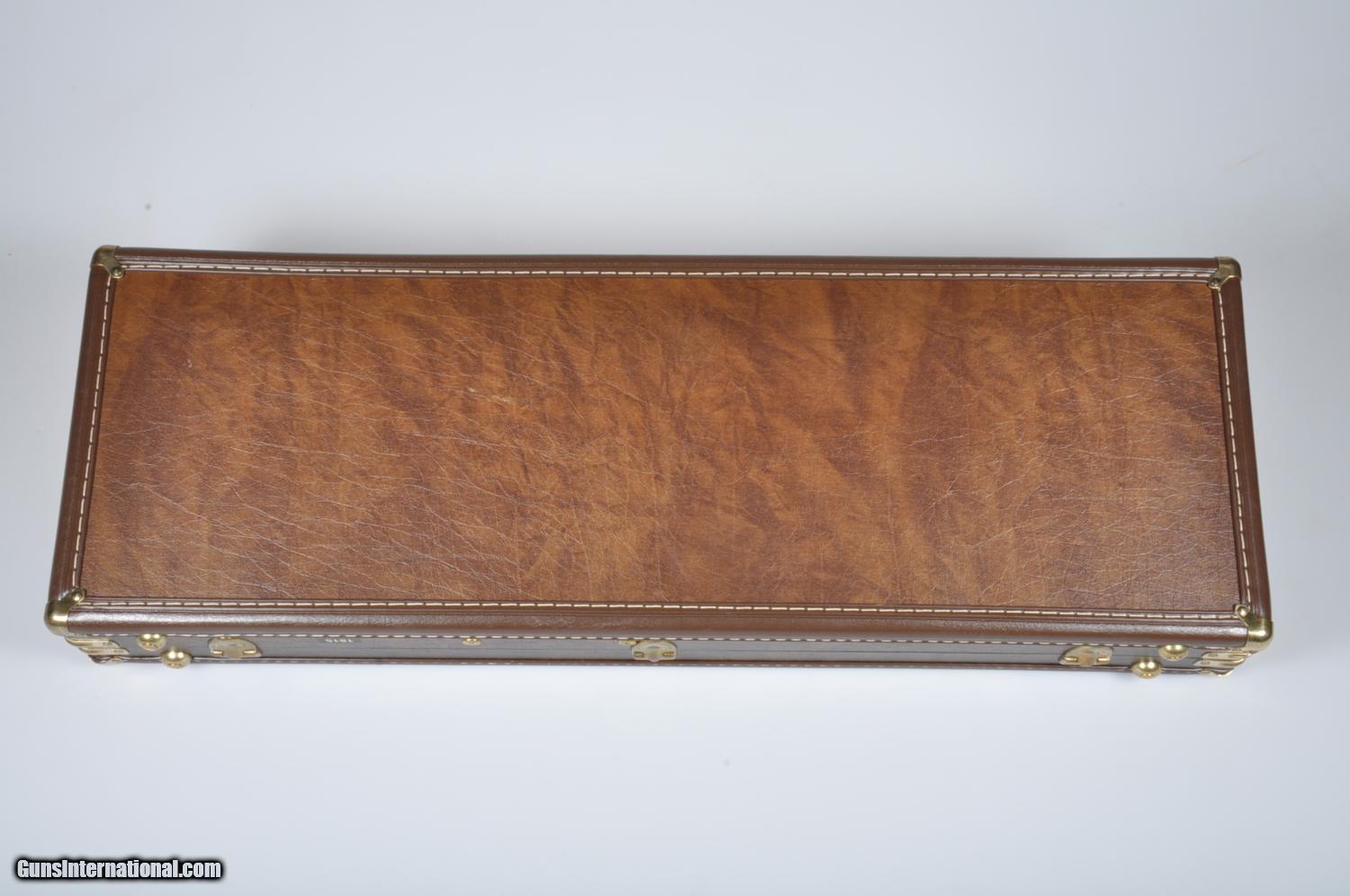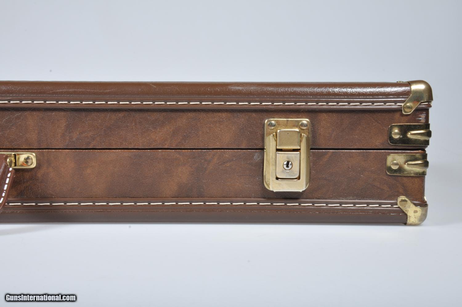 Description: This Browning case will accomodate a Browning Auto 22 semi-automatic rifle in .22 Short of .22 Long Rifle. It is in excelllent condition. The exterior has a few very light scratches, the brass harware is tarnishing a bit and the interior shows some compression marks. The latches and hinges work perfectly. We do not have a key for the latches. My office hours are 7am-4pm CST Monday through Thursday and 7am-11am Friday. Emails or phone calls received after hours and on the weekend will be answered on the following business day. SOLD |