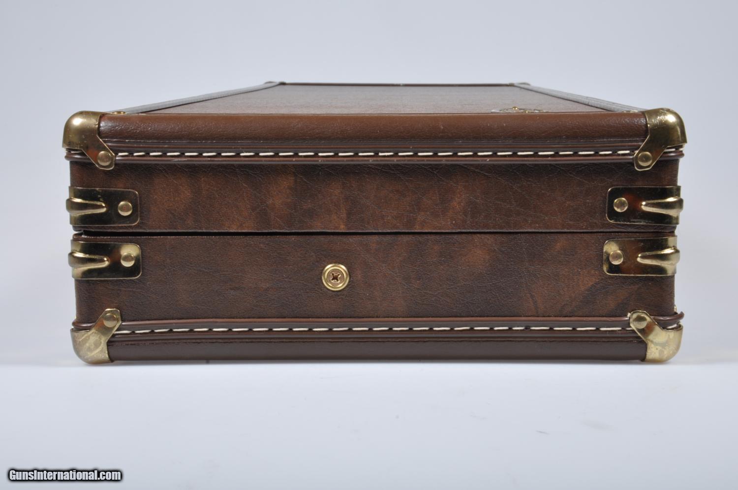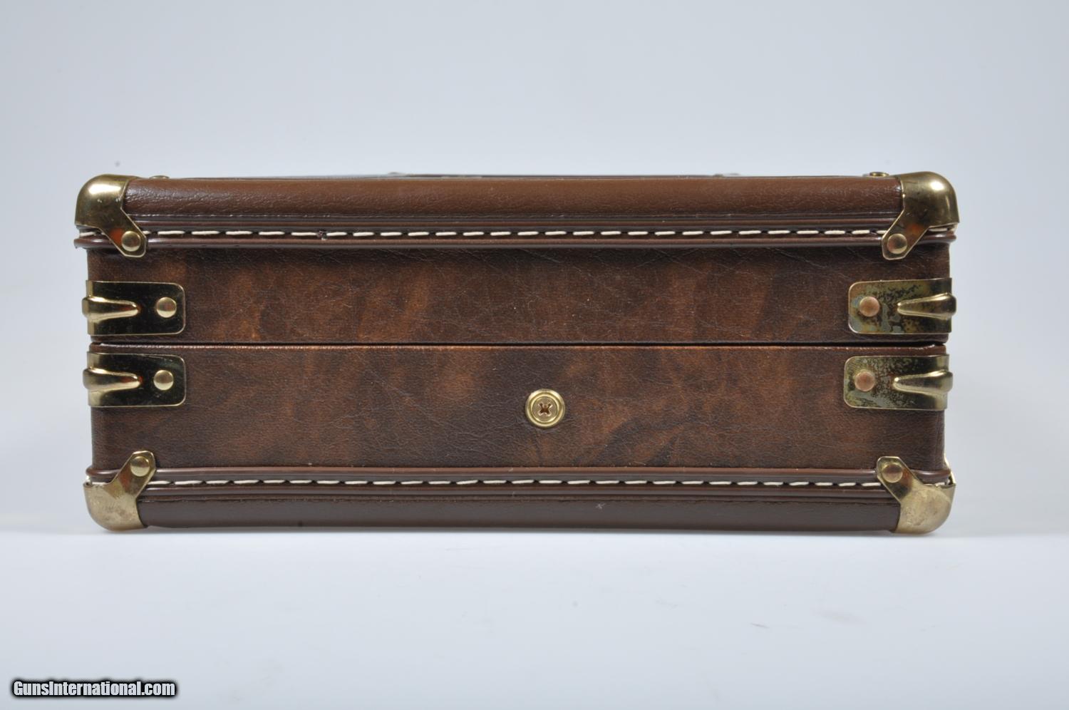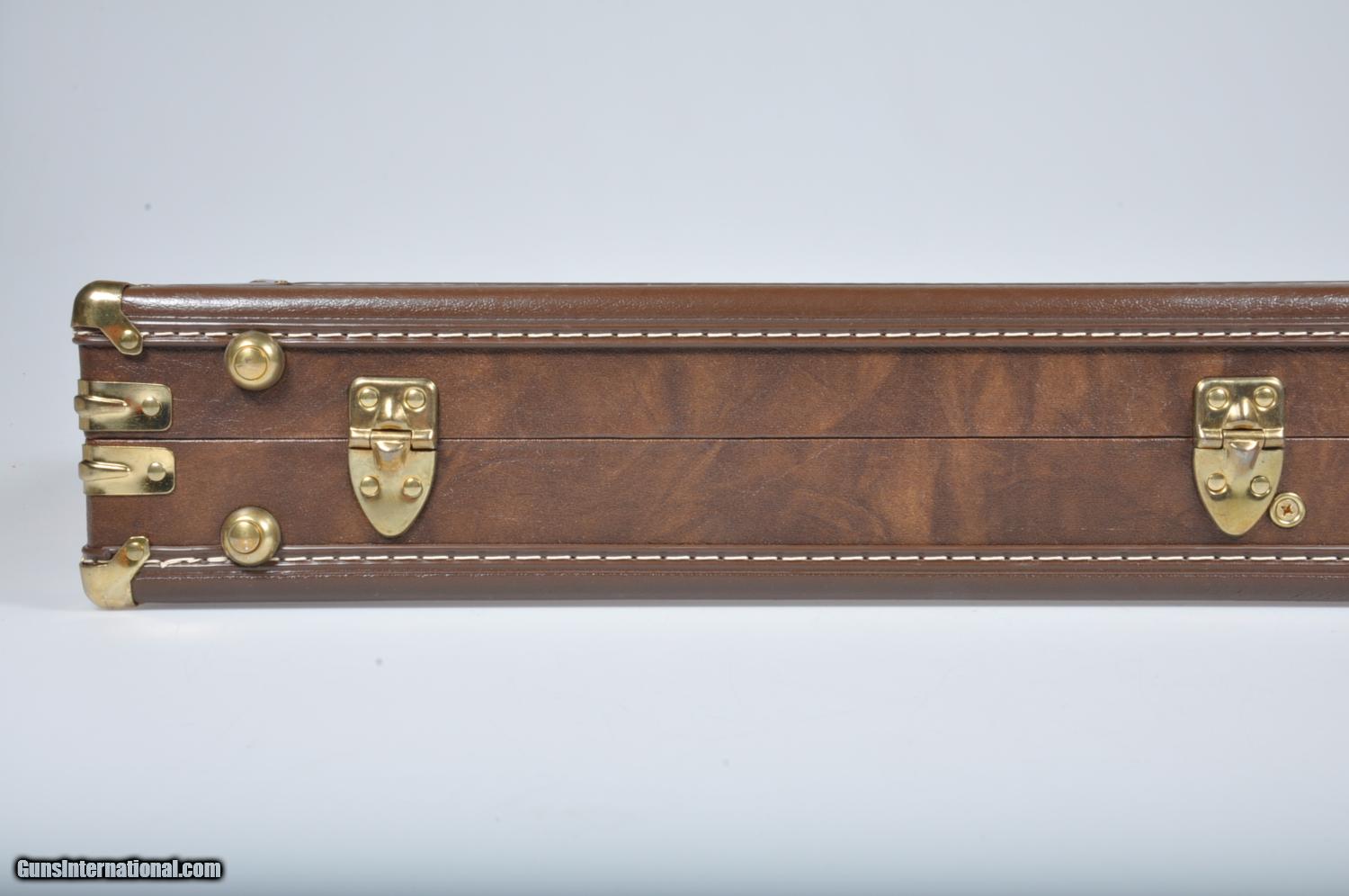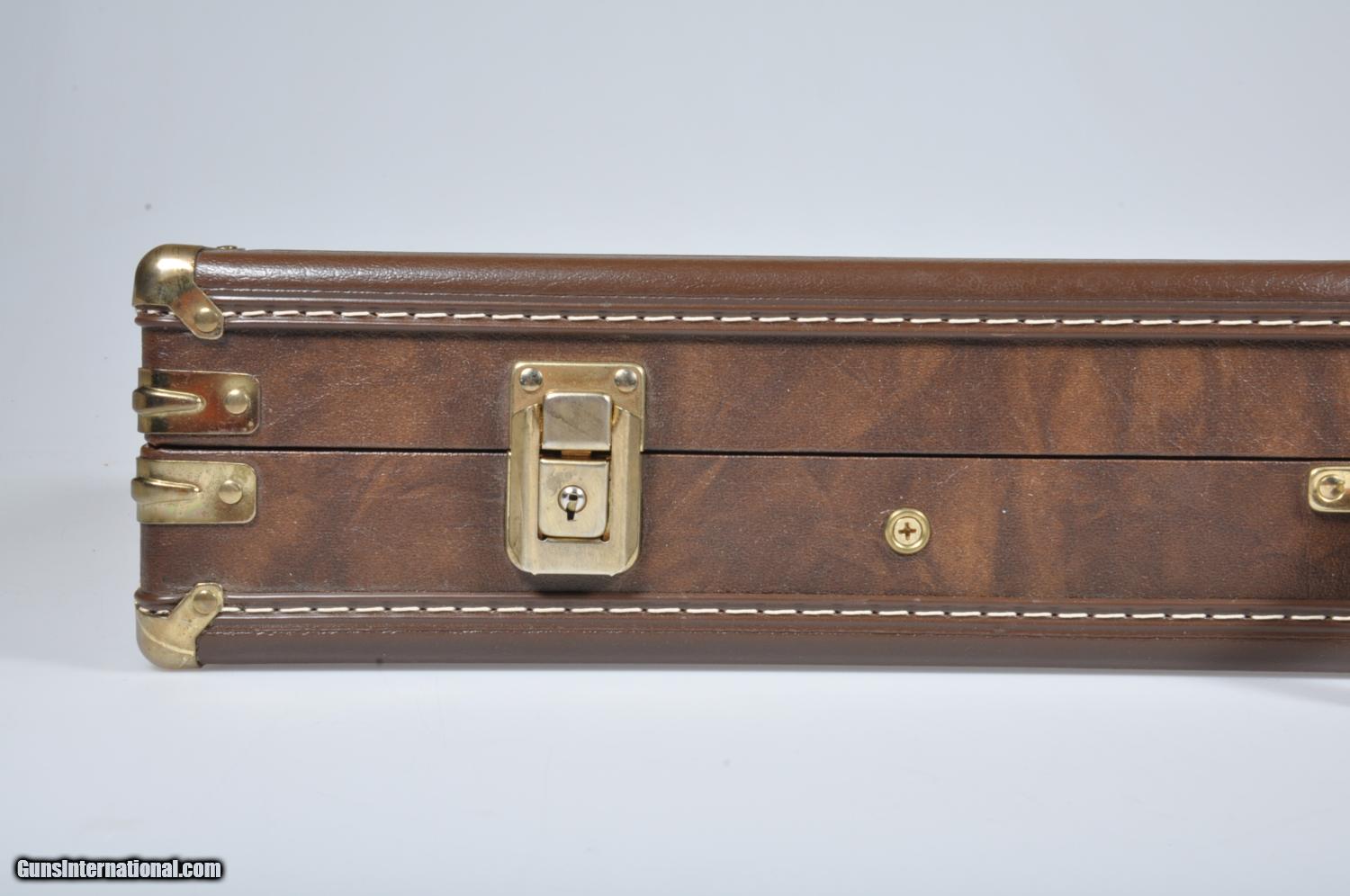 Description: This Browning case will accomodate a Browning Auto 22 semi-automatic rifle in .22 Short of .22 Long Rifle. It is in excelllent condition. The exterior has a few very light scratches, the brass harware is tarnishing a bit and the interior shows some compression marks. The latches and hinges work perfectly. We do not have a key for the latches. My office hours are 7am-4pm CST Monday through Thursday and 7am-11am Friday. Emails or phone calls received after hours and on the weekend will be answered on the following business day. SOLD |