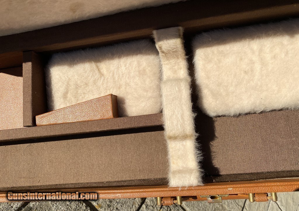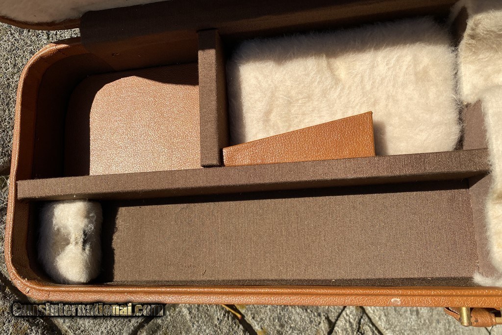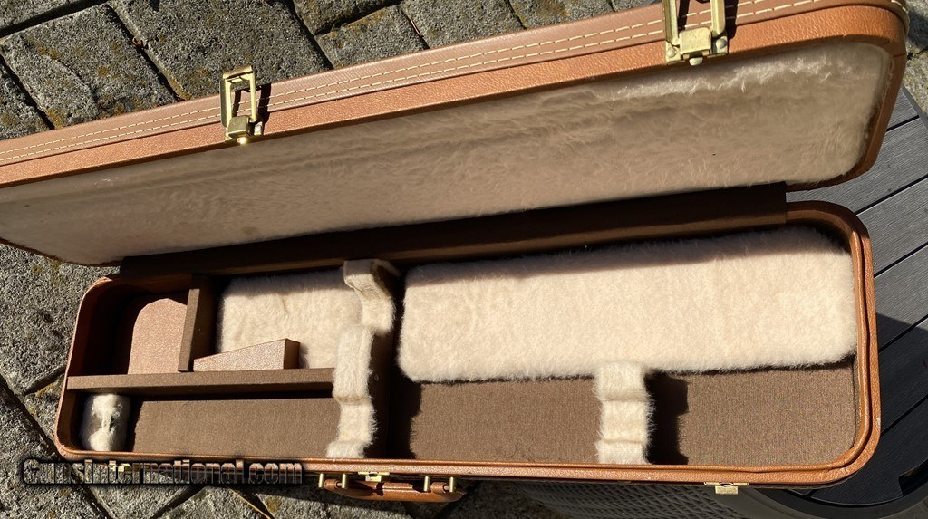 Description: Very nice Browning Airways Shotgun Case for a Browning BSS SxS shotgun with barrels up to 30". The exterior shows some marks on the top but overall is in excellent condition, the stitching, handle and locks are all in great shape. The interior is excellent showing only minor wear at the barrel lug block. One original key is included. A great vintage case in nice condition. Please see the pictures for accurate description and condition. Shipping is $30. Price: $525.00 Shipping: $30.00 Buy Now Contact Seller |