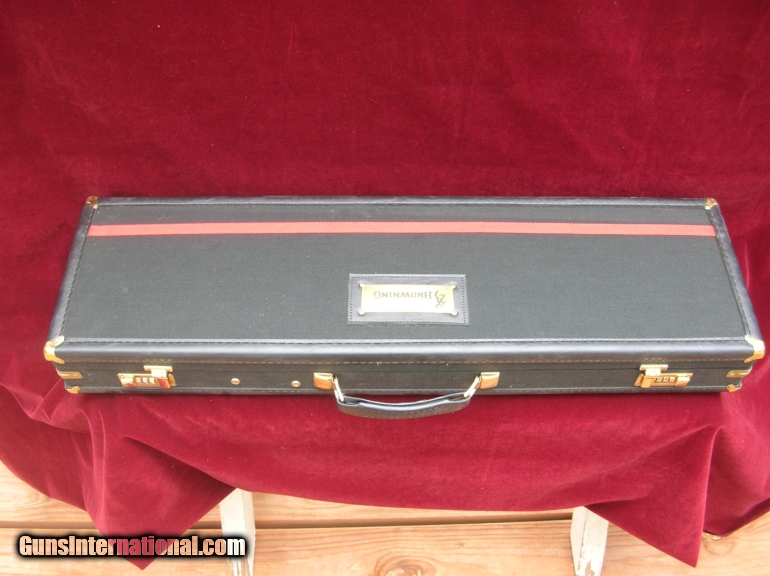 Description: SALE PENDING-Browning over/under case. Black canvas with red stripe. Will accept barrels to 30". Has a little discoloration inside but ex. overall condition. SOLD |
