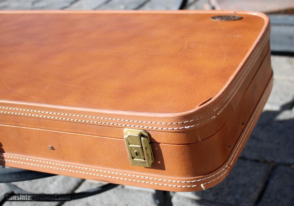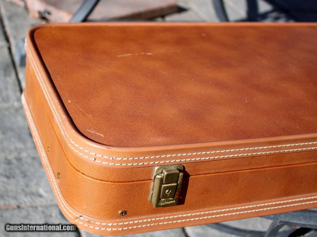 Description: SOLD! This is a good condition Hartmann 3 barrel case. It does show use on the exterior and the interior shows soiling in the barrel slots. Will hold 20ga, 28ga, 410ga barrels up to 30”. These early 3 barrel Hartmann cases are hard to find. Free shipping in Cont. US. Please see my other items for more vintage Browning cases. SOLD |