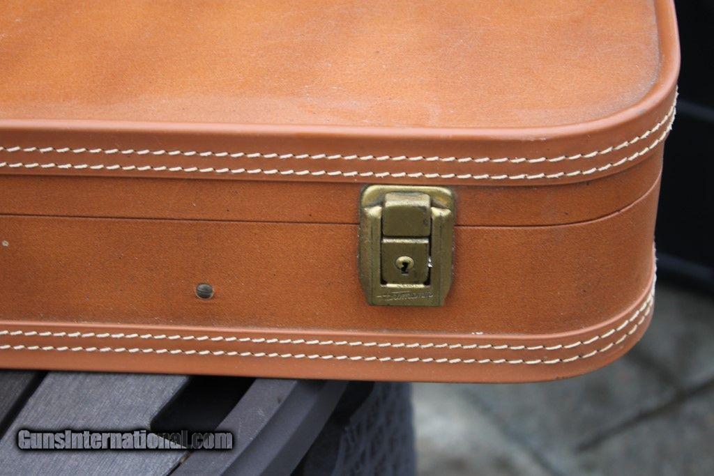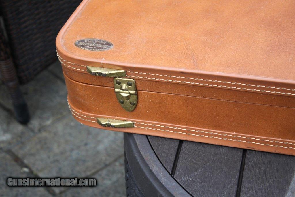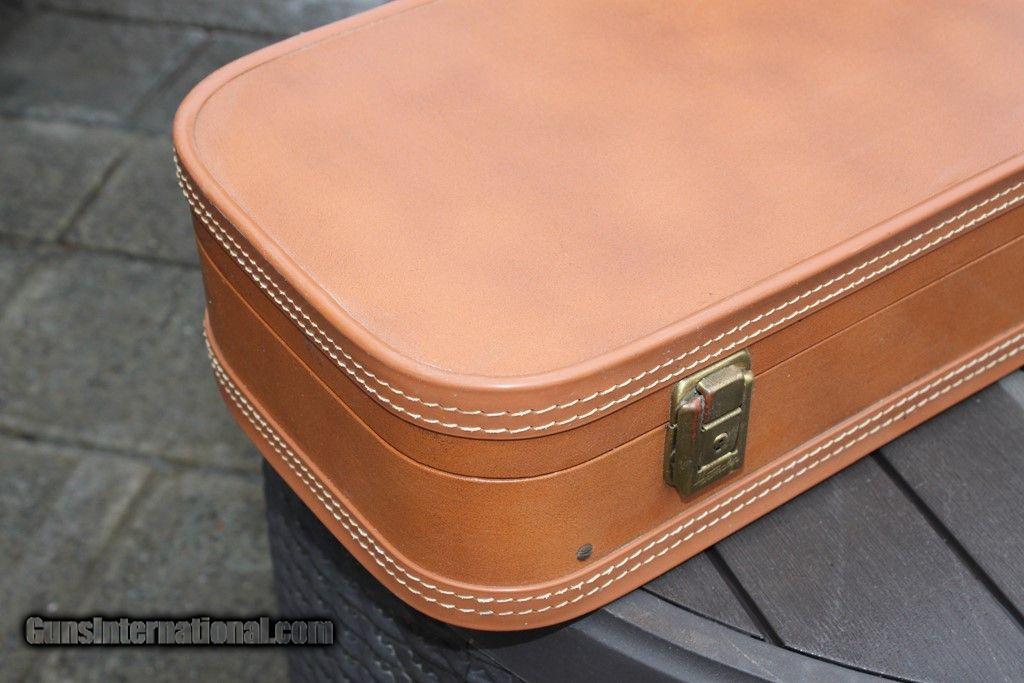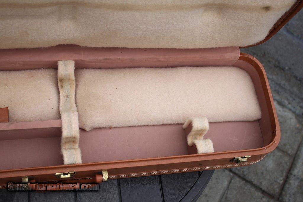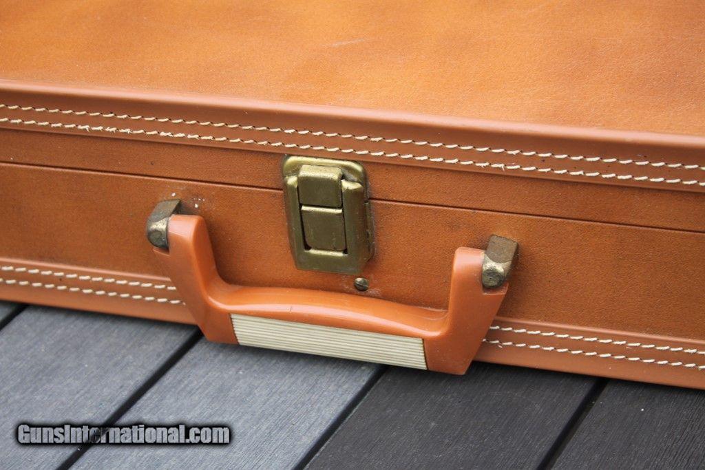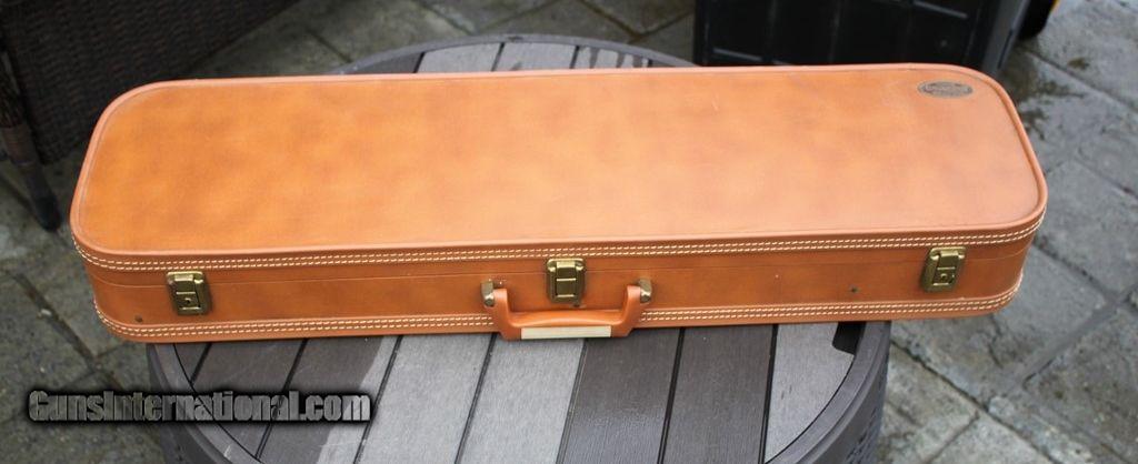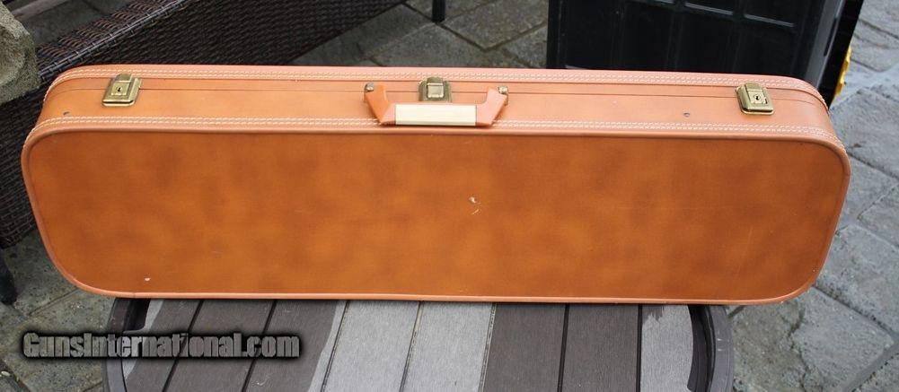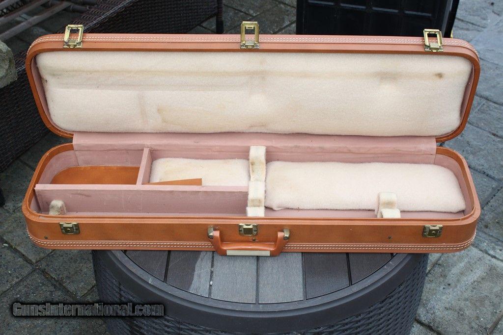 Description: SOLD! Browning Superposed Hartmann shotgun case. Minor marks from storage on the exterior. Inside has some slight soiling. This case will hold one set of barrels up to 30”. One original key is included. Please see pictures for accurate description and Condition. SOLD |