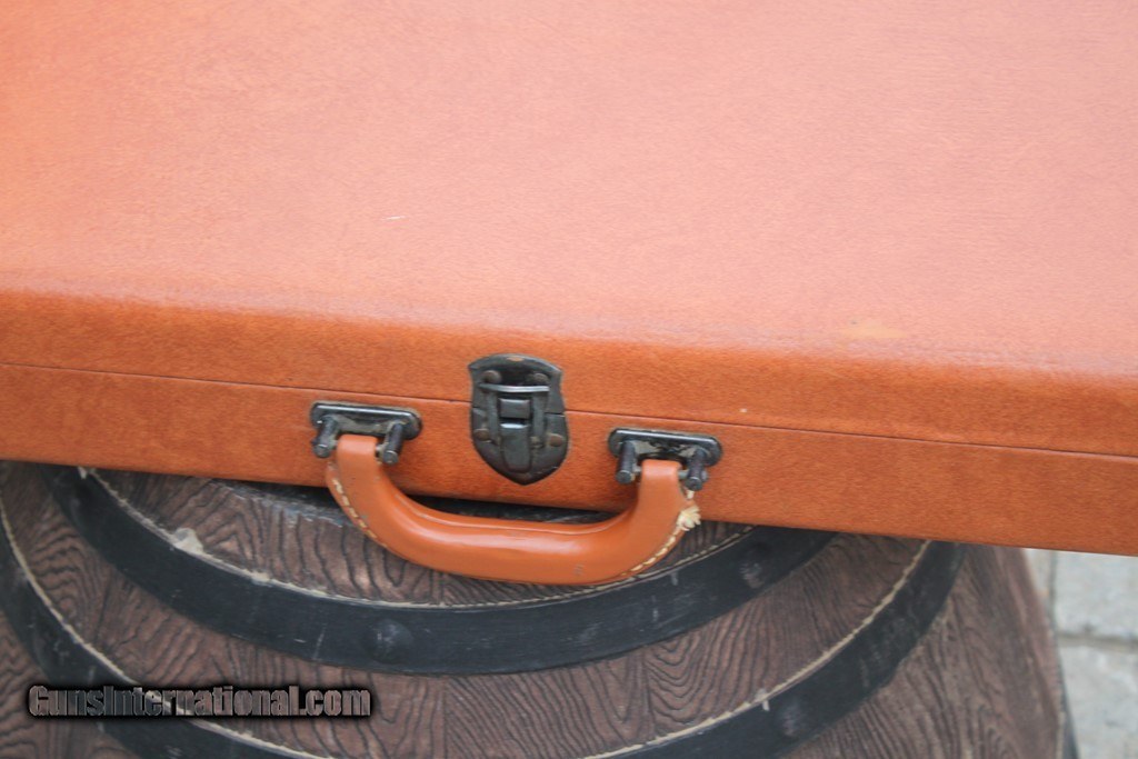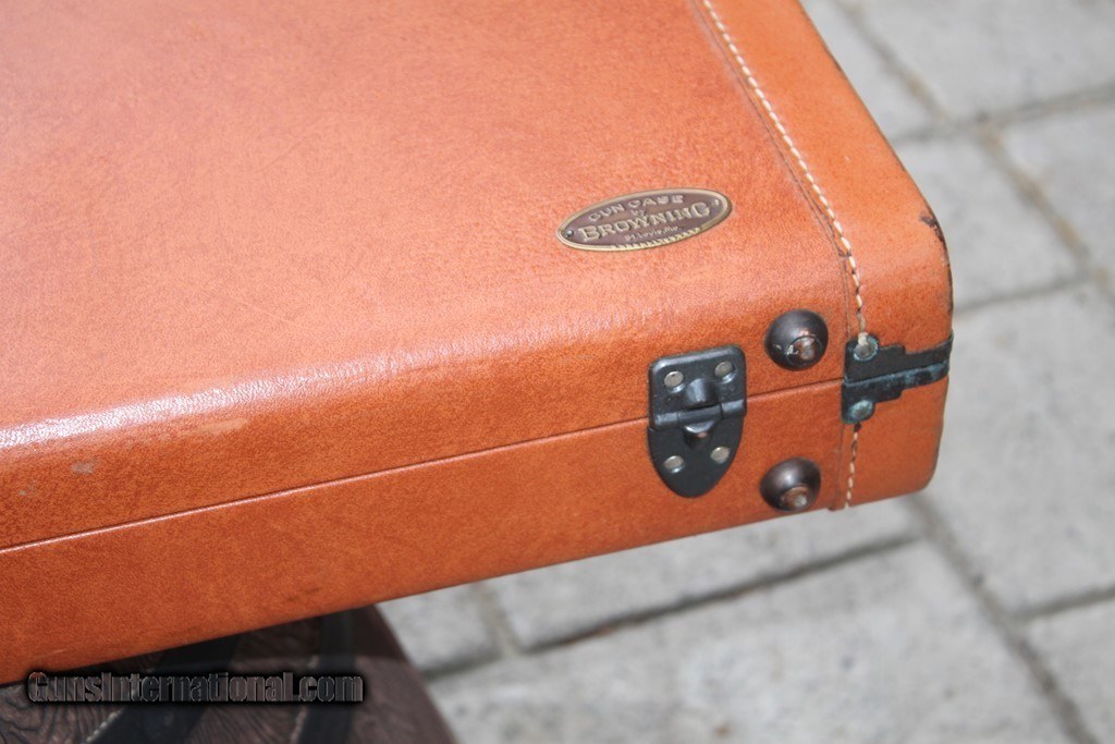 Description: Browning Superposed Tolex two barrel shotgun case. Excellent condition on the exterior with small marks from use. Endcaps and stitching are excellent. Inside has some soiling. One original Key is included. Max barrel length is 30". Please see pictures for accurate condition and description. See my other listing for additional vintage cases. SOLD |