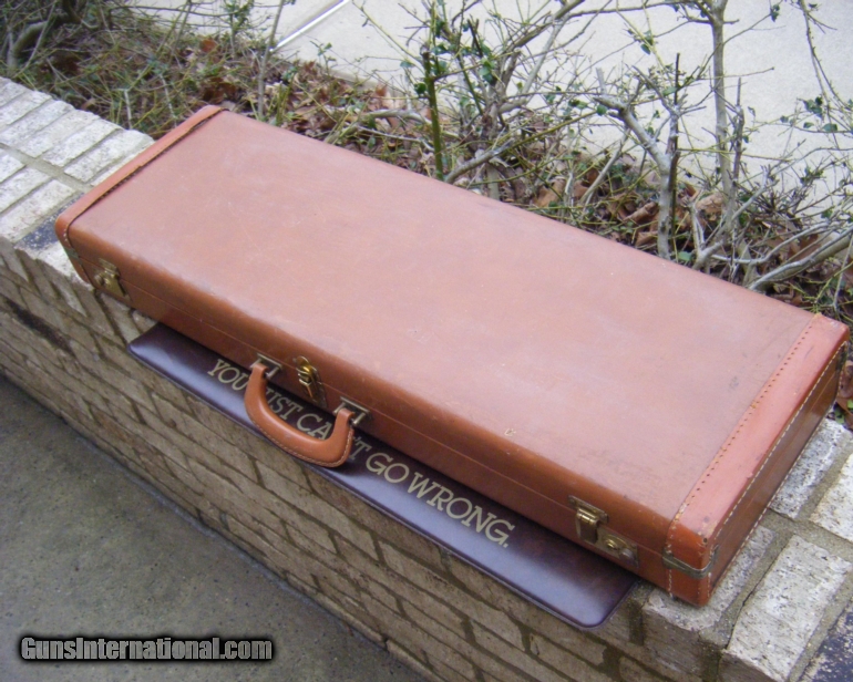 Description: SOLD>>>>RARE Early Tolex case in 75% condition exterior and 98% interior. Measures 31.5 x 10 x 4 on the outside. Will hold up to 30" barrels. Includes key. SOLD |