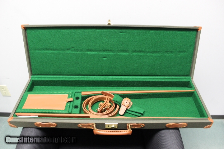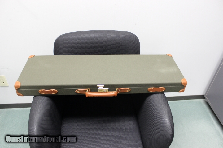 Description: Canvas & Leather Deluxe Gun Case. Here is a really nice high quality trunk gun case. The exterior is a green canvas with leather corners and case straps. The inside is nicely padded in a plush green cloth. The inside dividers are covered in leather too. You also have a snap cap and cleaning rod holder. There is a covered accessory compartment. Comes with extra fabric. This case will fit both a sbs or u/u with barrels to 30". New. $225. Quality Arms. Call Direct 281-870-8377 SOLD |