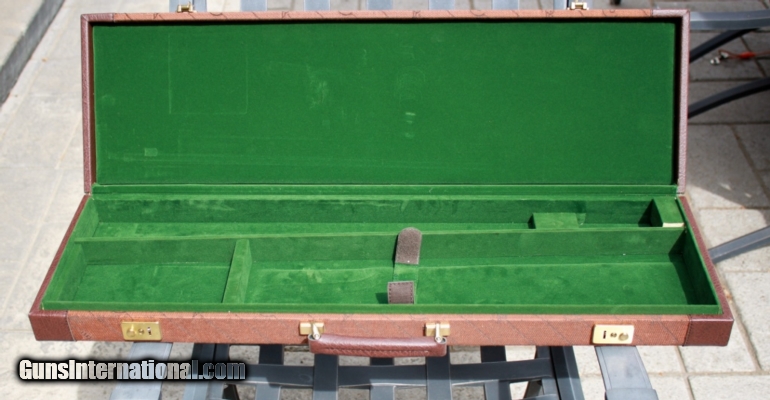 Description: SOLD!!! Ducks Unlimited breakdown canvas and leather shotgun case. Made in Italy by Emmebi. Very good condition inside and out. Some slight stains in the barrel compartment, otherwise it looks unused. Inside is excellent and will hold barrels up to 30.25" long. Please see pictures for accurate condition and description. Sale price includes FREE shipping in Cont. US. see my other listings for more vintage cases. SOLD |