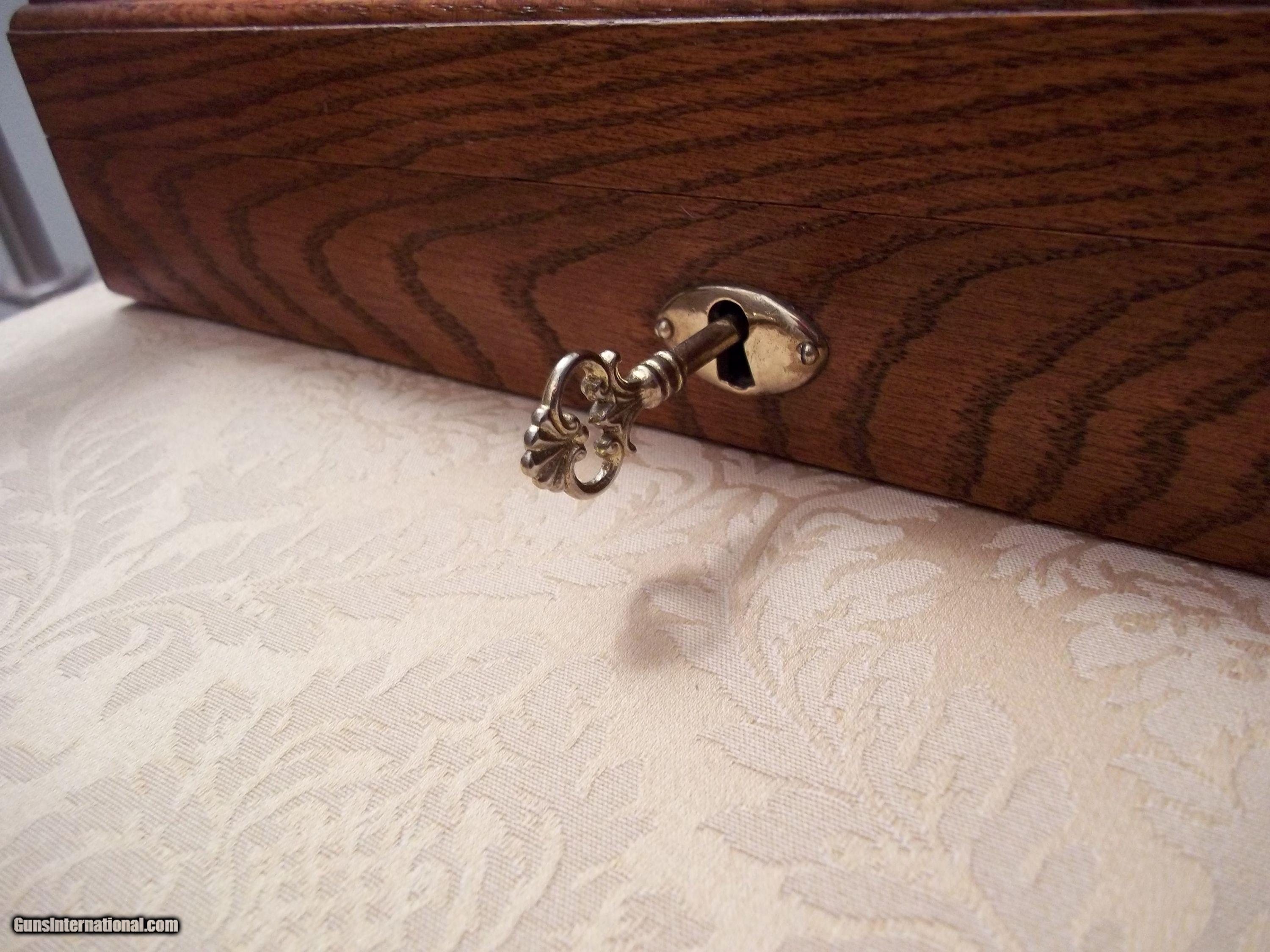 FROM THE COLT GUN SHOP 1978 SAA CUSTOM OAK PRESENTATION CASE WITH ORIGINAL KEY-PRISTINE CONDITION-A RARITY TODAY!