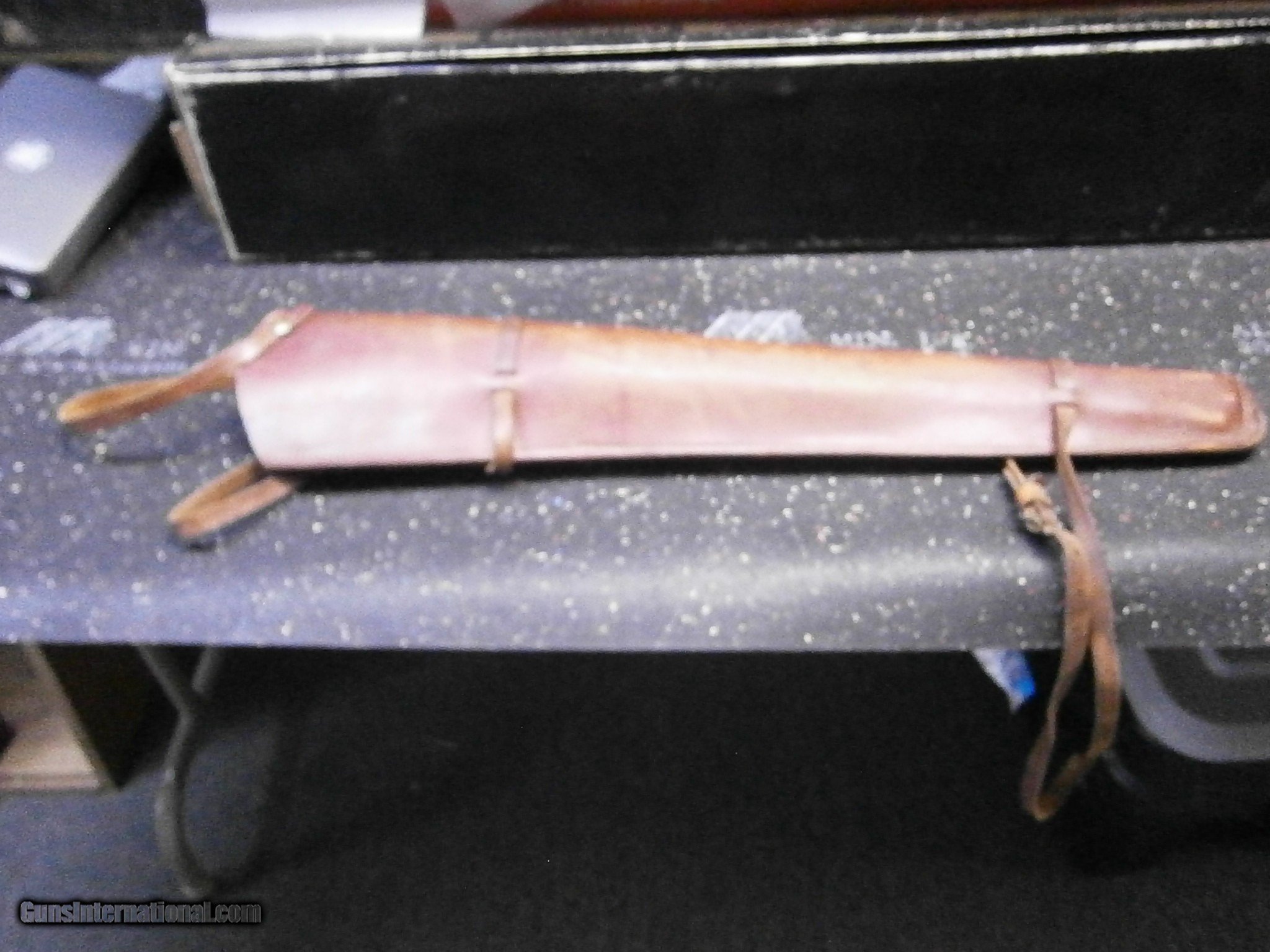 Description: (Sale Pending)Nice vintage leather rifle scabbard for your horseback riding, motorcyle or collecting. This is the "Black Sheep Brand" model 1100-20. Very good condition with soft leather. Straps and buckels are all there. Shipping is included in the price. SOLD |