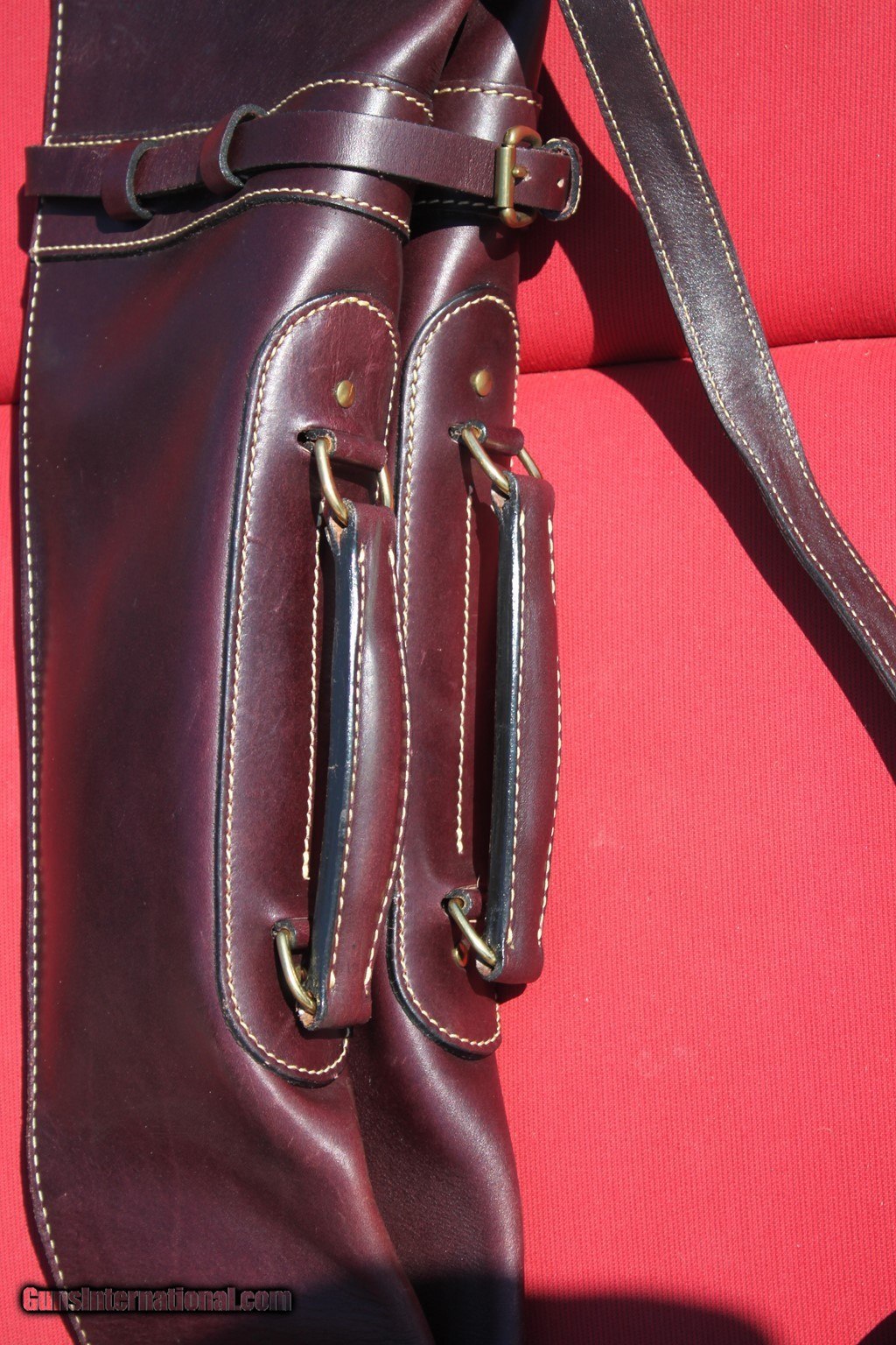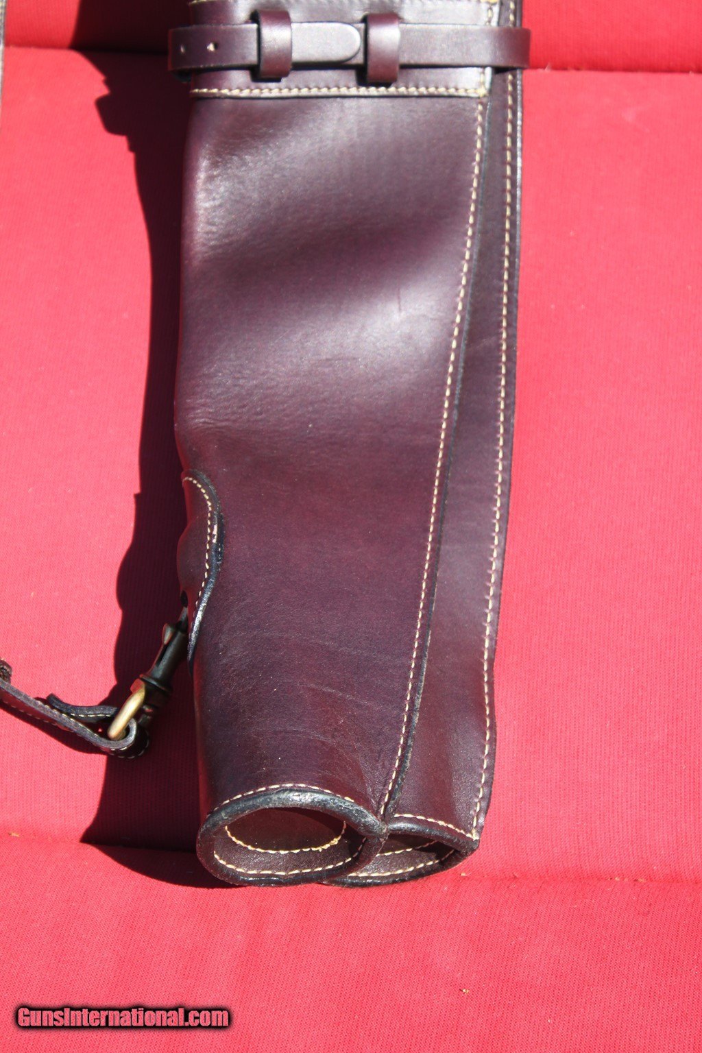 Description: SOLD! Outstanding pair of Mulholland Bros leather gun case in "AS NEW" condition. These cases are perfect and have not been used. Can be used as singles or strapped together as a double case. Great high quality set of cases for your double guns. Please see pictures for condition. SOLD |