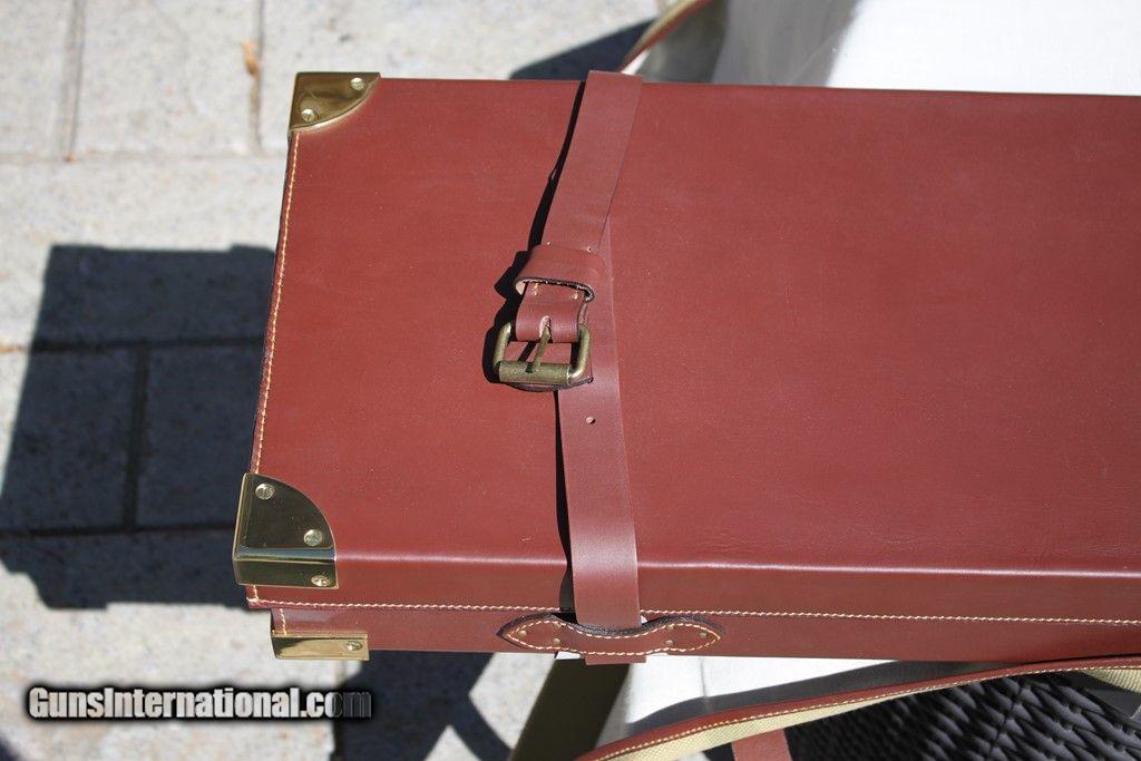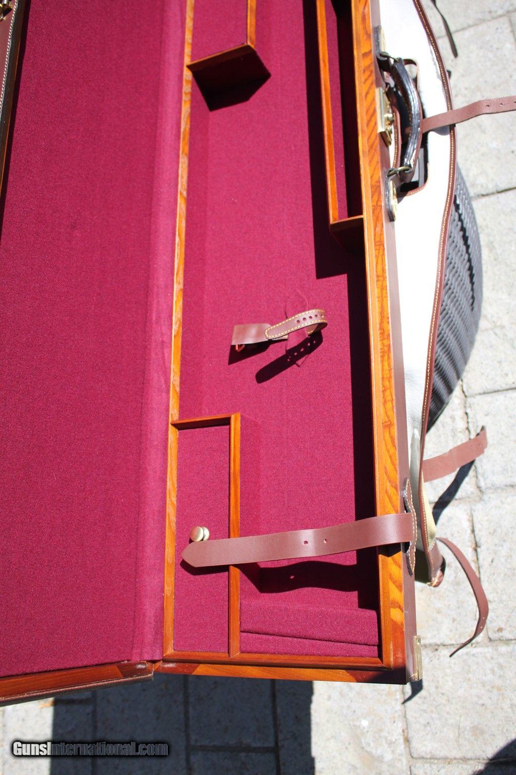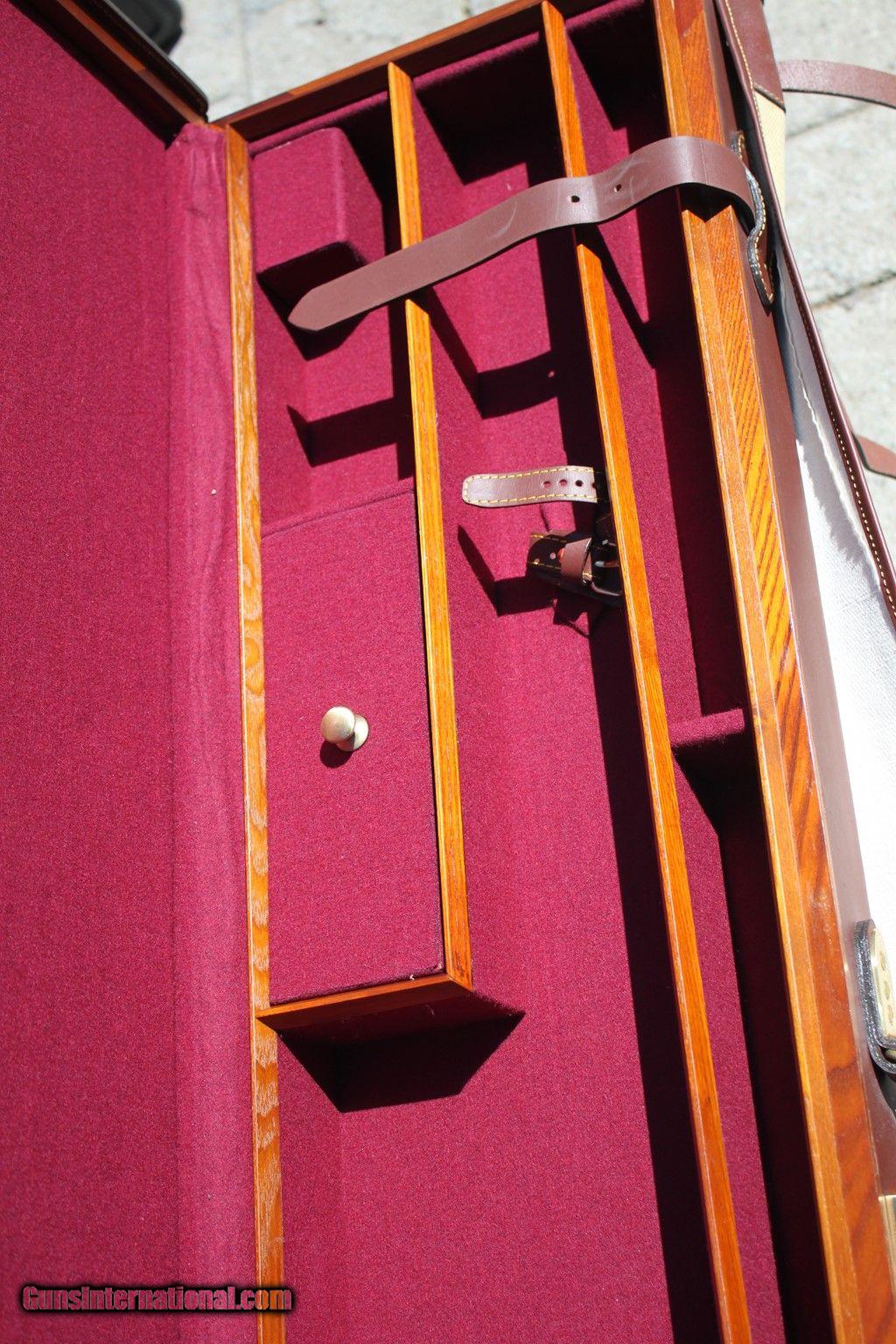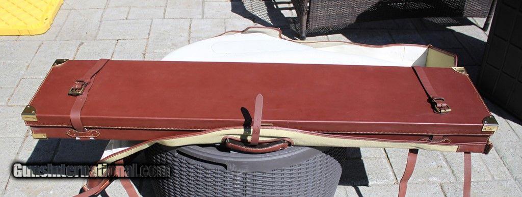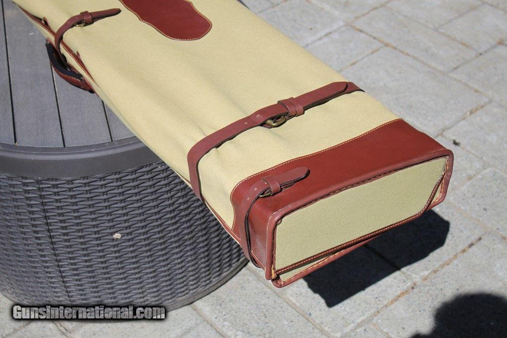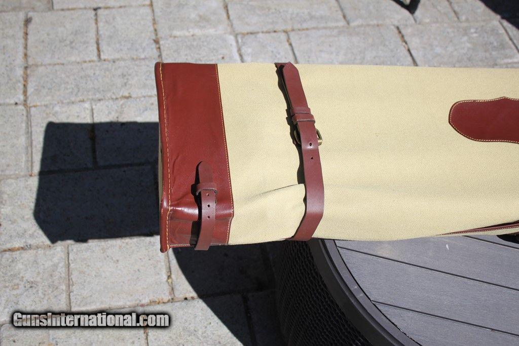 Description: SOLD! New Oak and Leather full length gun case with canvas cover. Excellent as new condition with canvas cover. This case can be used for a rifle or shotgun. Please see pictures for accurate description and condition. Length – 51″ Depth – 11.5″ Height – 3.75″ SOLD |