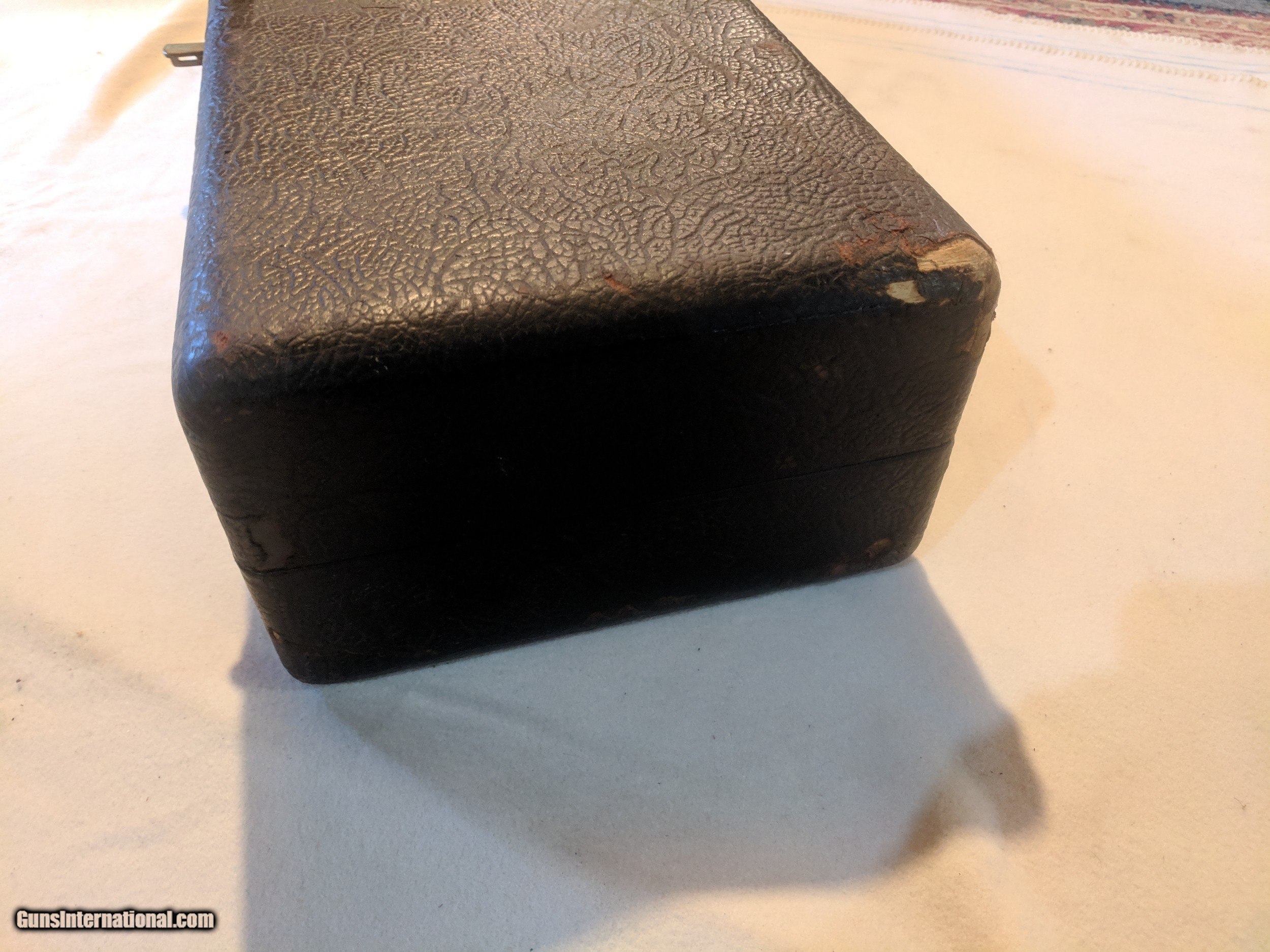 Description: Hello, Up for grabs we have a very rare Pre War Browning shotgun case. We've never seen one like this before. Its for a pair of Auto 5 shotguns with slots for an extra barrel for each gun. All original lining, this case is exceptionally rare. There is some cracking and aging, nothing that a little TLC from a collector couldnt remedy. Divider flap has some warping, but could be flattened. Sesamee Lock (Combo is unknown, but several youtube videos show how to figure it out) Please see photos for details SOLD |