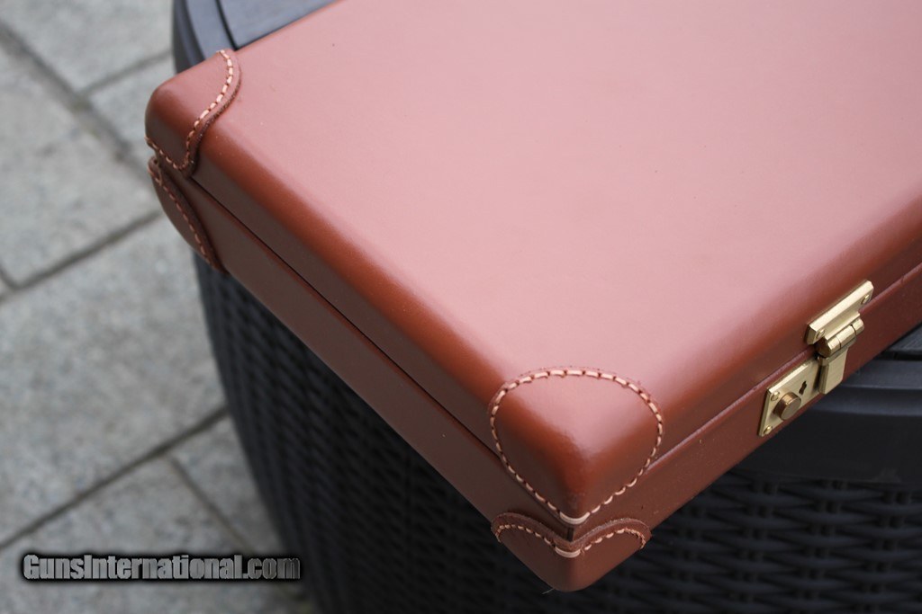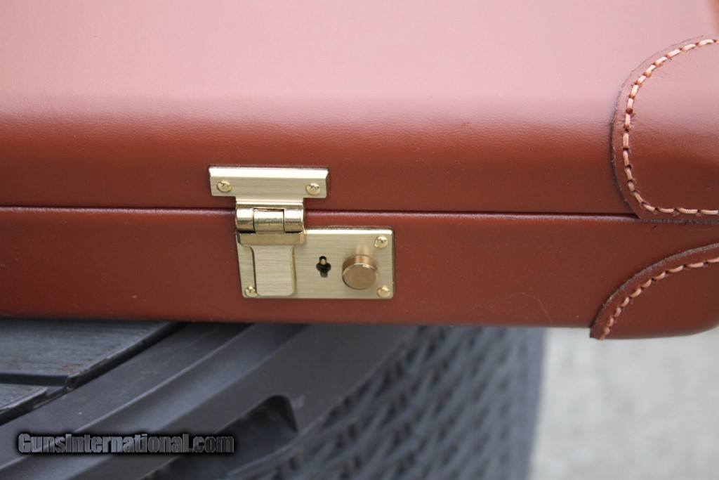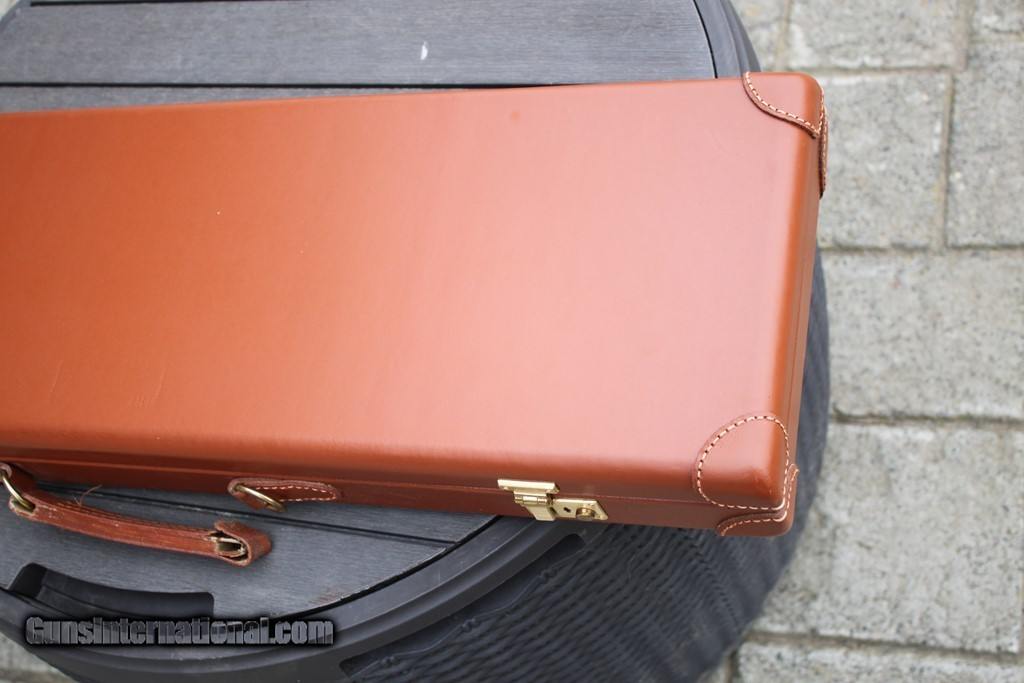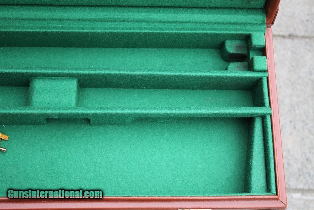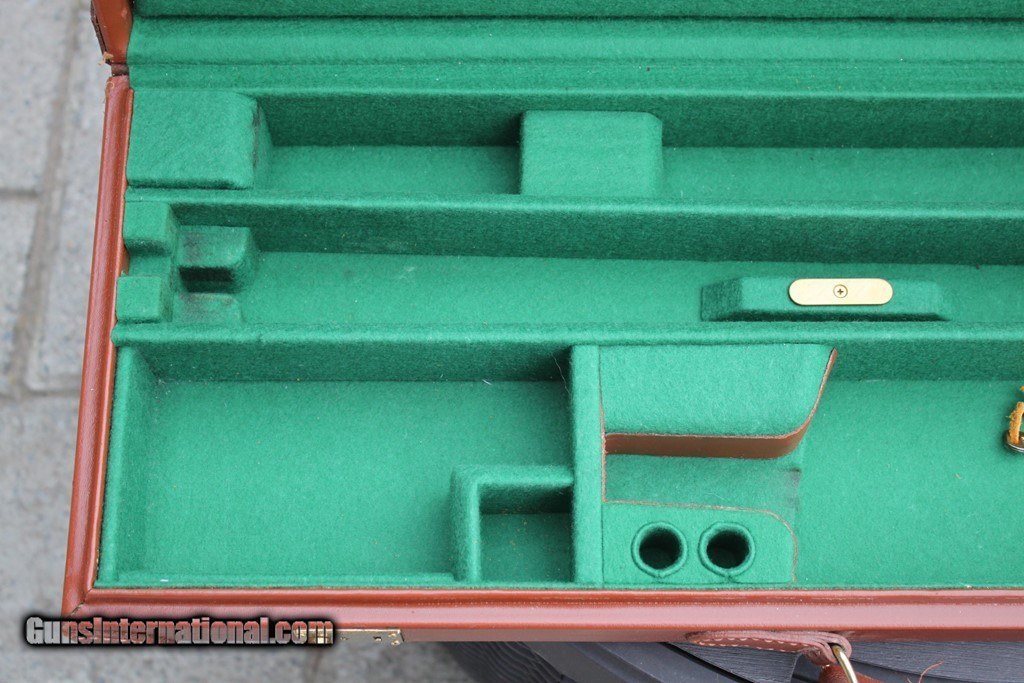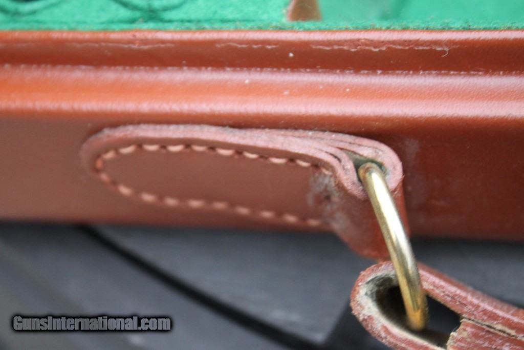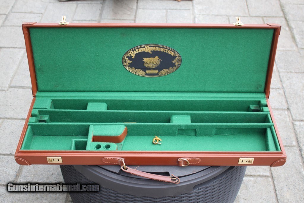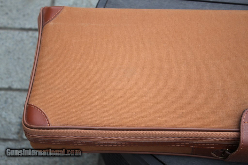 Description: SOLD! Parker Reproduction 2 barrel shotgun case for 28ga pair. The case and outer cover are in excellent slightly used condition. The handle is broken and needs fixed. Nice case that needs a bit of work as the handle is broken on one side and needs mending or replaced.. Please see pictures for accurate description an condition. SOLD |