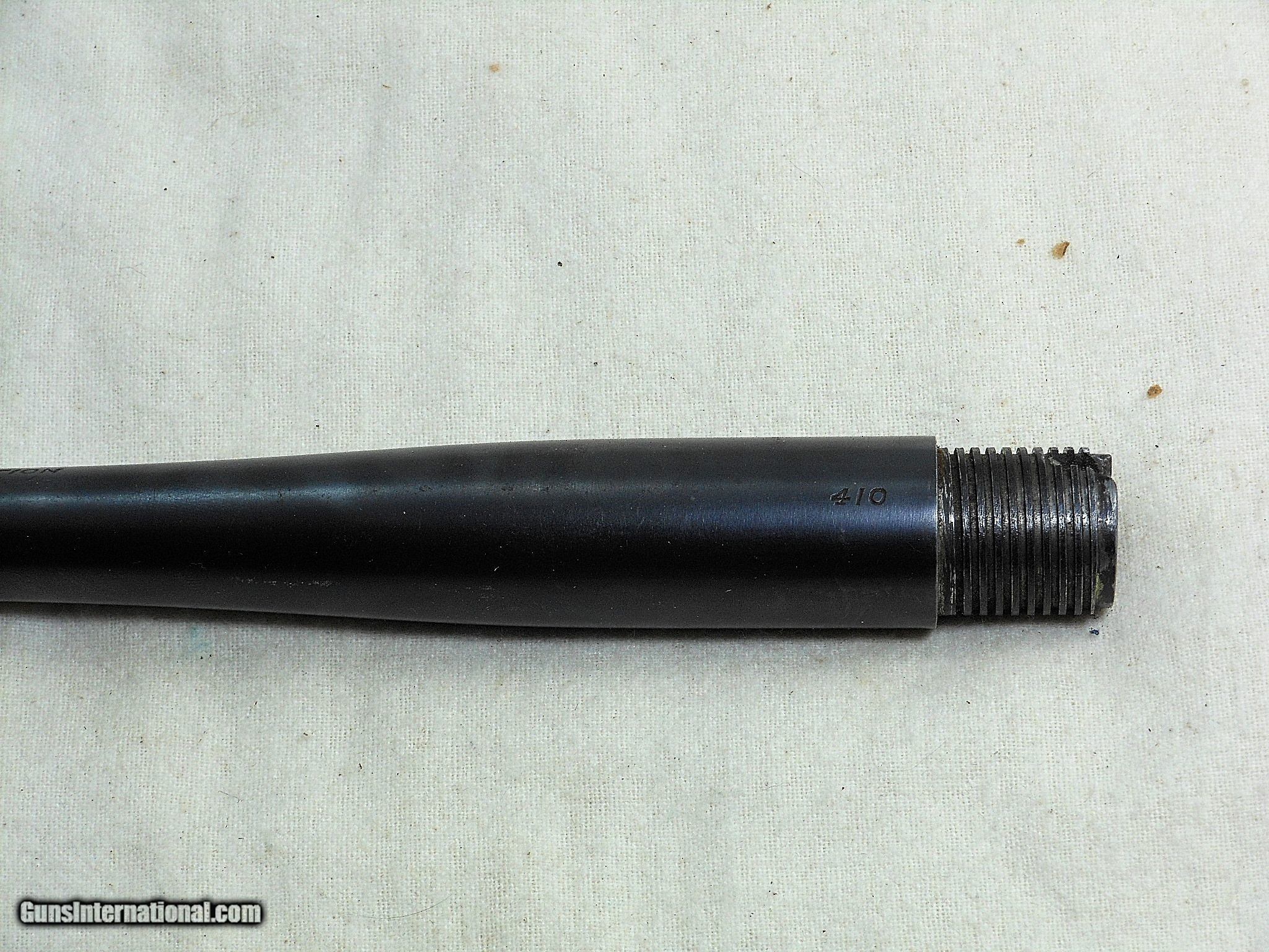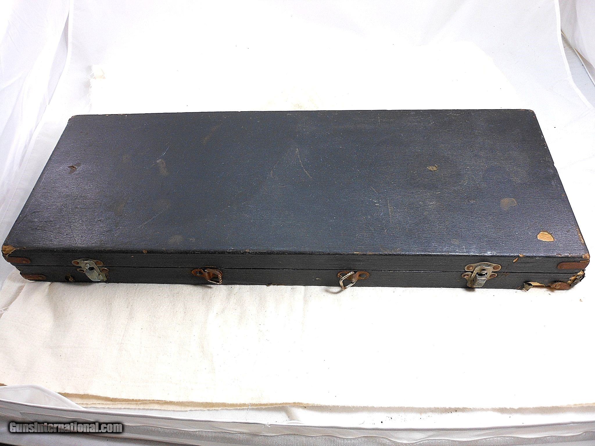 Description: This Savage case is the correct case for the Model 99 take down rifles. The shotgun barrel is the original take down barrel for these Model 99 takedowns. The barrel is in fine condition with a bright bore. The take down screw is intact. The horse shoe type nut for the screw is missing. The case is in fair condition. The case latches work fine. The carry handle is missing. This case shows much use and wear. The Inside Savage logo is intact. This Case set would be correct for the early style Savage type 99 takedown rifles. Search for hlvfineguns on google for more details. J.M.C. Consn. (12) F. No. 426 SOLD |
