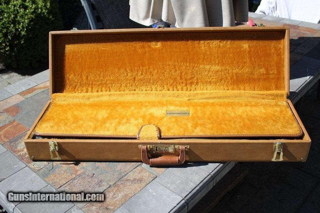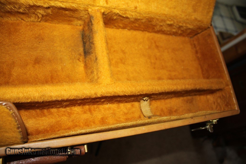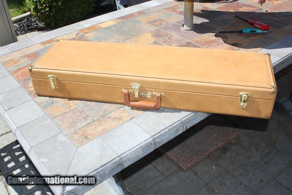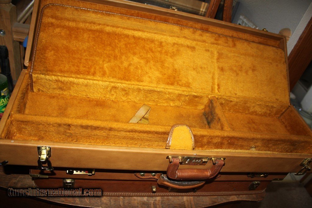 Description: SOLD! Yellow leather gun case for Winchester 101. From the 70's I think. Good used condition with some soiling on the inside and a few marks on the exterior. Combo lock not set. Good overall used condition. Please see Pictures for accurate description and condition. SOLD |
